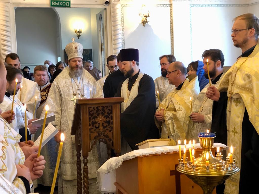 При отпевании правящему архиерею, настоятелю храма, сослужил благочинный, клирики епархии и священнослужители - сокурсники почившего иерея Владимира по семинарии.