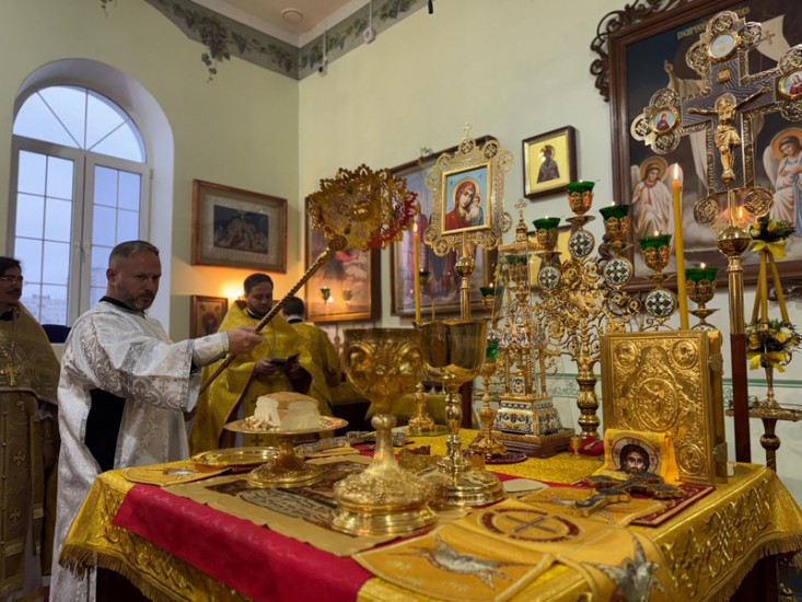 20 ноября 2025 года, в день рождения Святейшего Патриарха Московского и всея Руси Кирилла, Преосвященнейший Мстислав, епископ Тихвинский и Лодейнопольский, совершил Божественную Литургию в храме Рождества Христова на подворье Свято-Троицкого Александра Свирского мужского монастыря в Санкт-Петербурге. Его Преосвященству сослужили: настоятель иеромонах Николай (Бестужев), братия и гости подворья в священном сане.