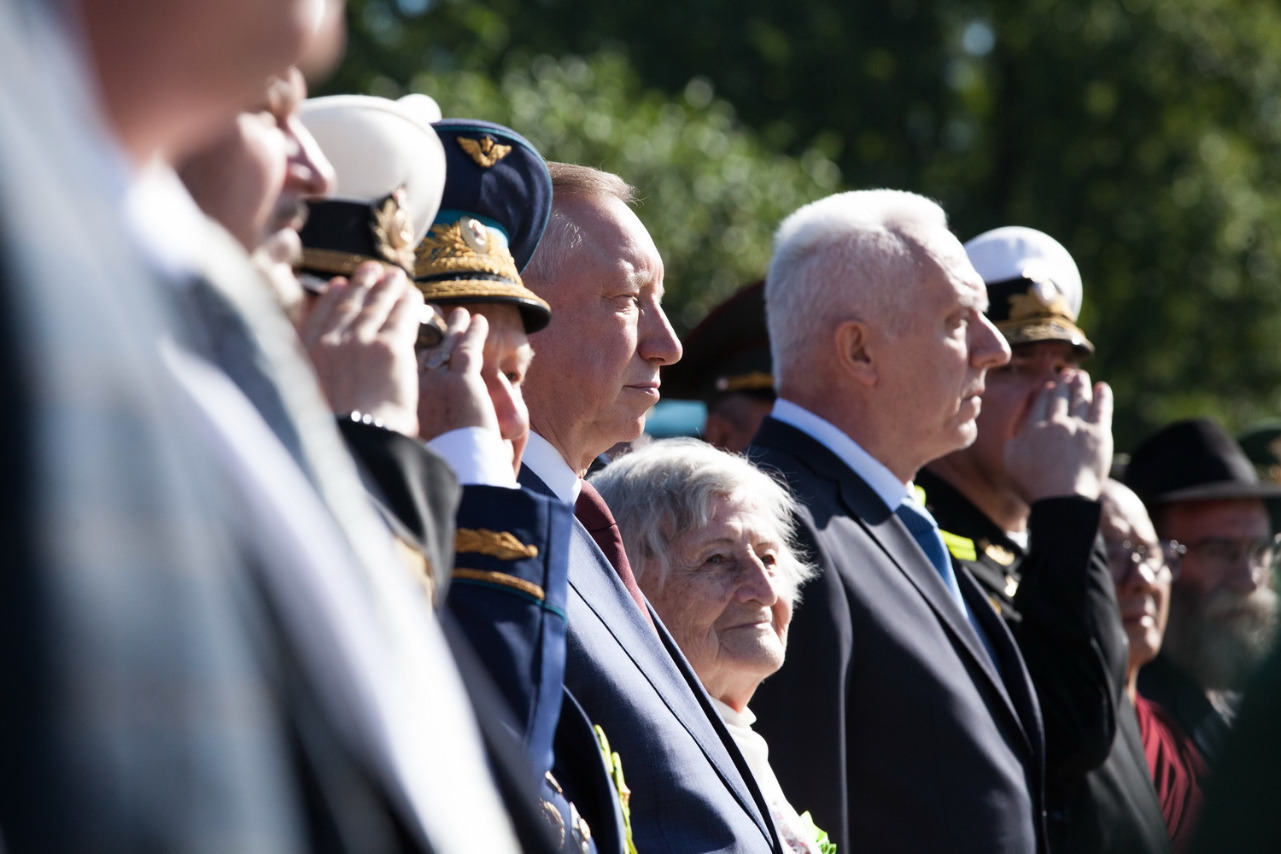 Венки и цветы возложили полпред президента РФ в СЗФО Александр Гуцан, губернатор Александр Беглов, председатель Заксобрания Александр Бельский, представители Вооруженных Сил и правоохранительных органов, общественных и ветеранских организаций, традиционных религиозных конфессий.