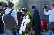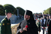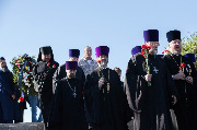 У монумента Матери-Родины священнослужители пропели "Вечную память" защитникам города и жертвам блокады. К памятнику был возложен венок из белых цветов в форме креста, каждый положил по красной гвоздике.