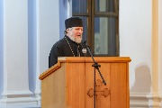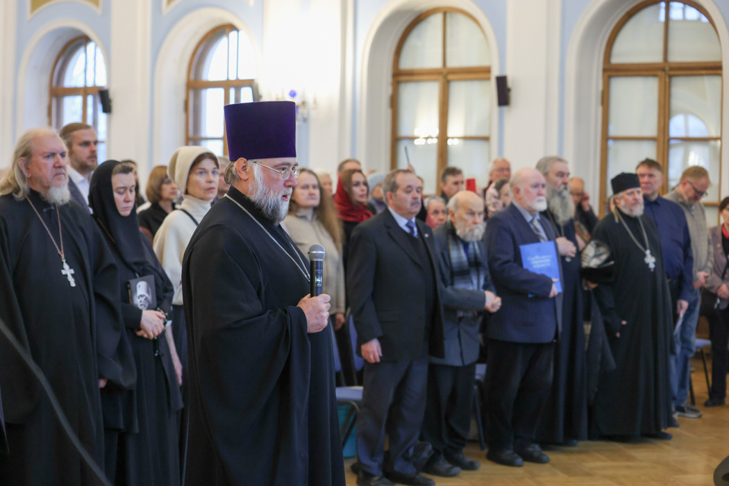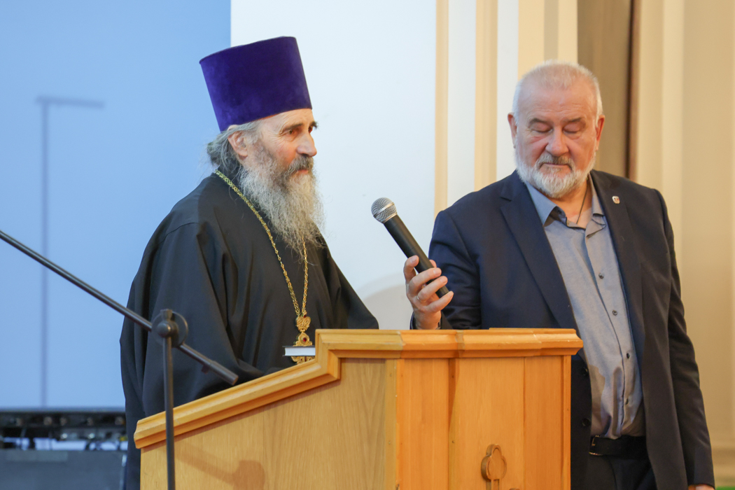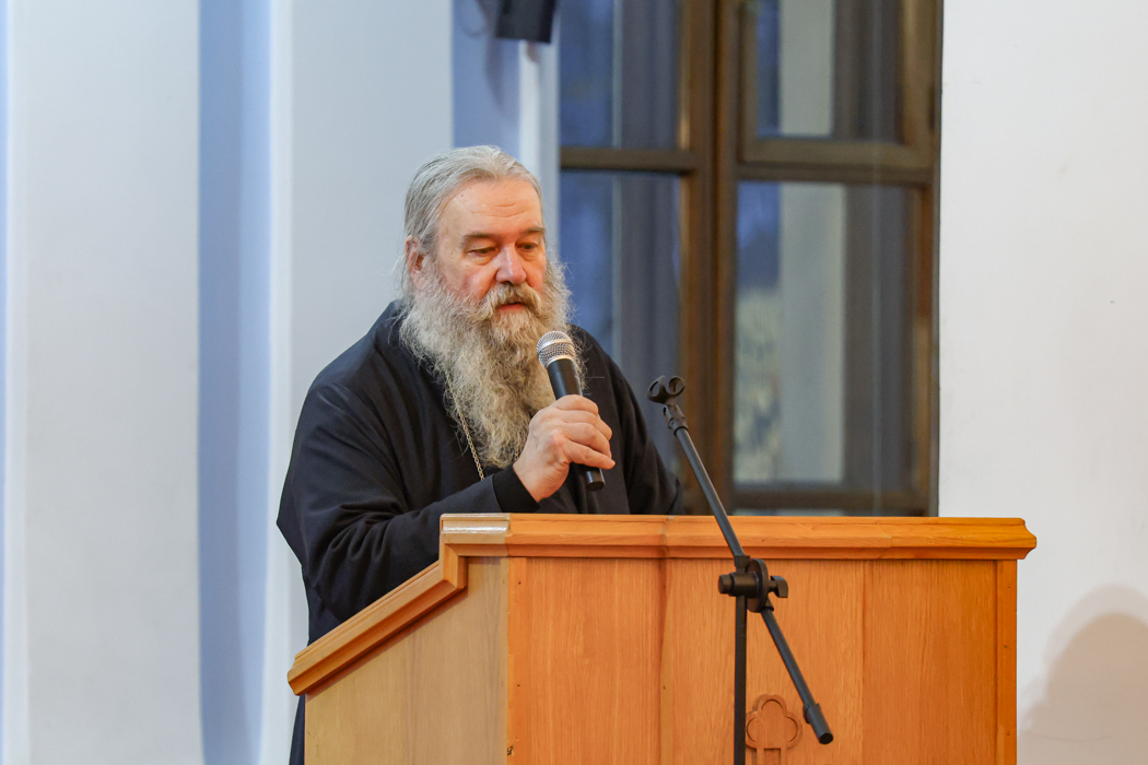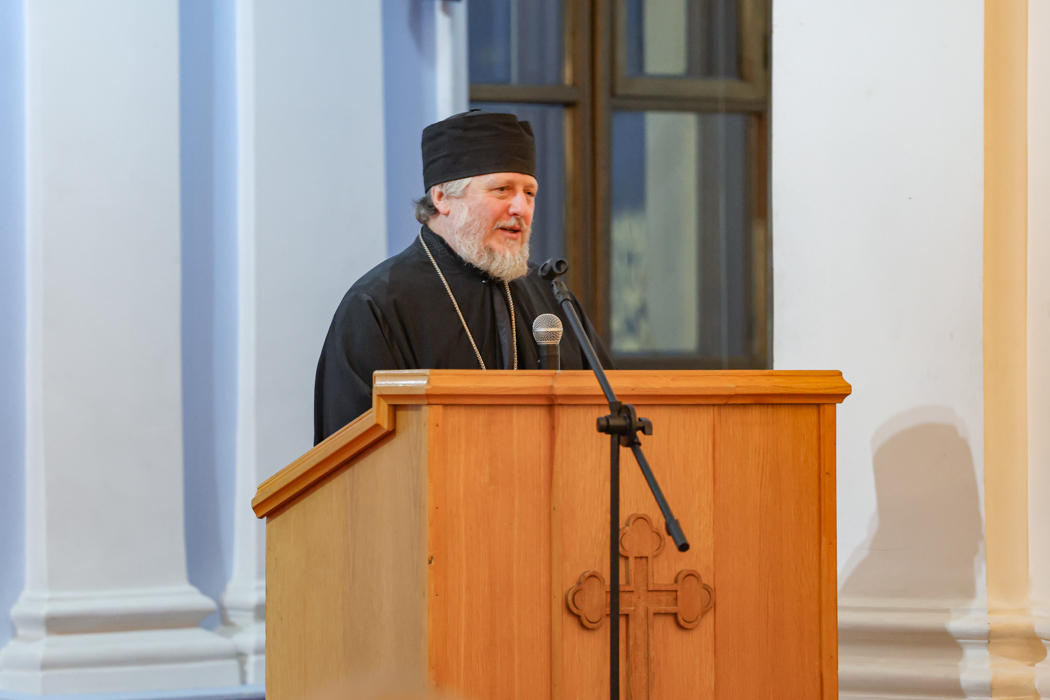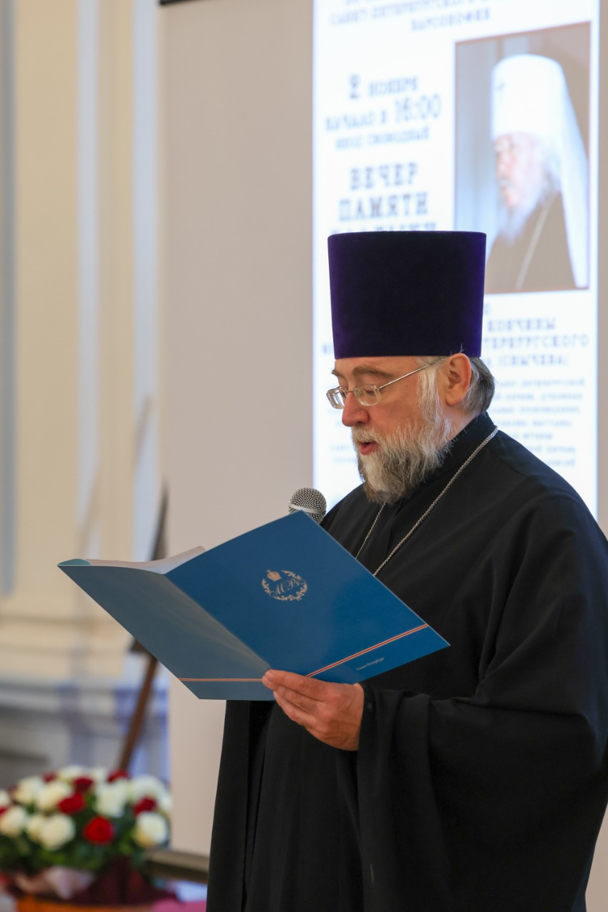Отец Вадим зачитал приветствие митрополита Санкт-Петербургского и Ладожского Варсонофия.