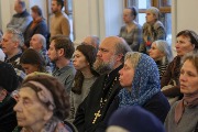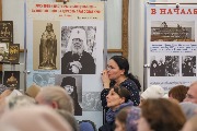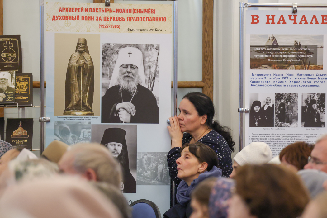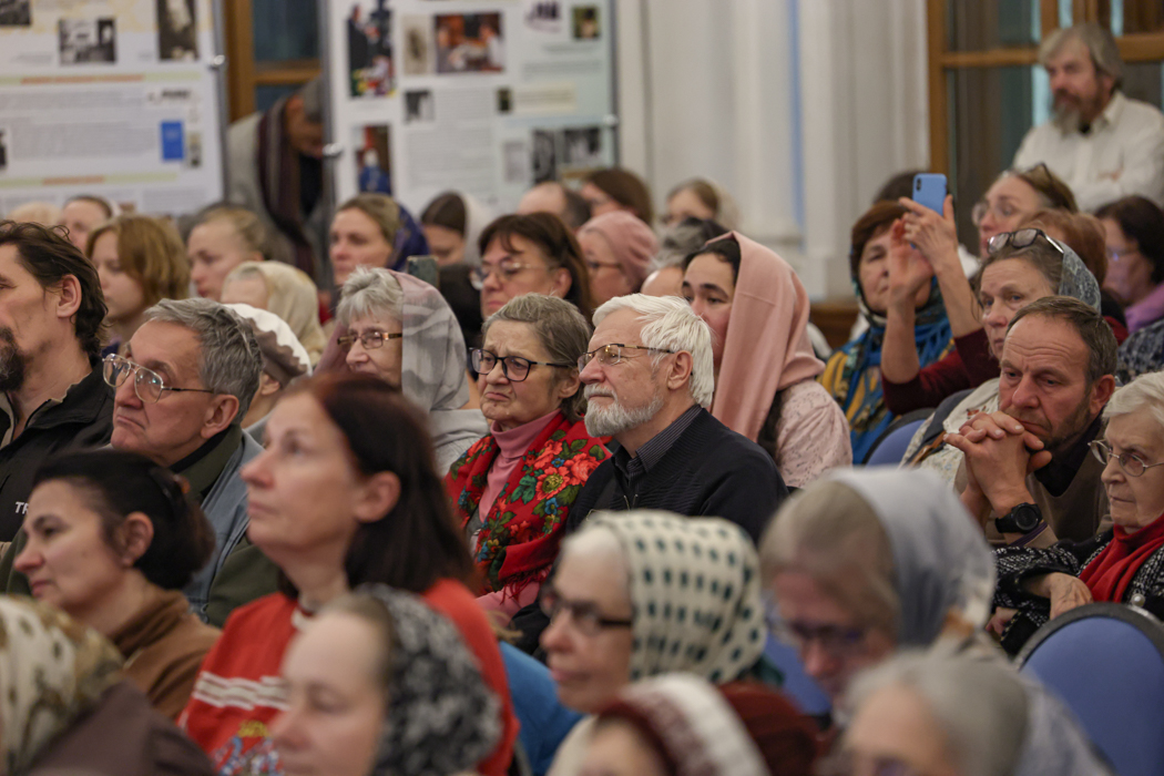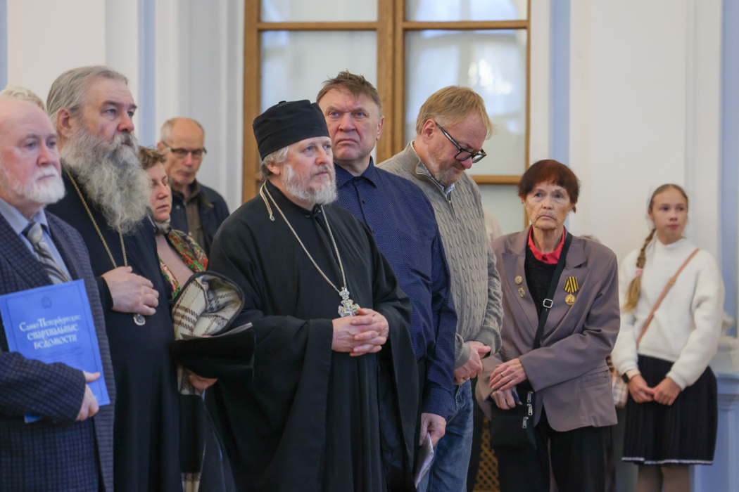 В зале можно было ознакомиться с выставкой, подготовленной музеем истории Санкт-Петербургской епархии.