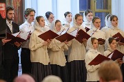Детско-юношеский хор преподобного Иоанна Дамаскина под управлением Ирины Болдышевой исполнил три композиции на ее музыку. Одна из них посвящена святому Александру Невскому, вторая - песня "Русский человек" на слова приснопамятного протоиерея Анатолия Трохина (1956-2025), третья - "Гимн собору", написанная в 1993 году. Владыка неоднократно слышал эту композицию, поскольку был настоятелем Владимирского собора.