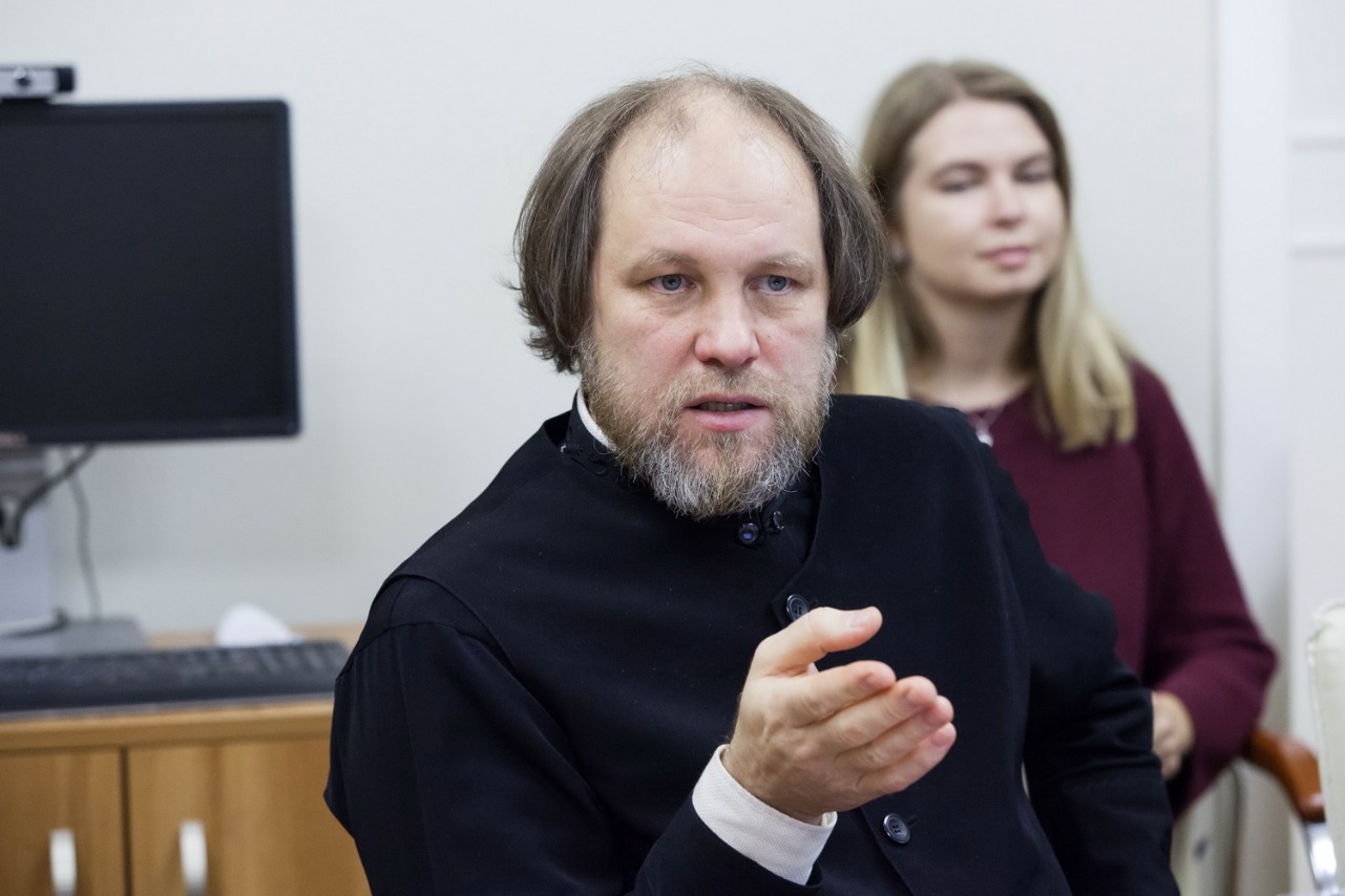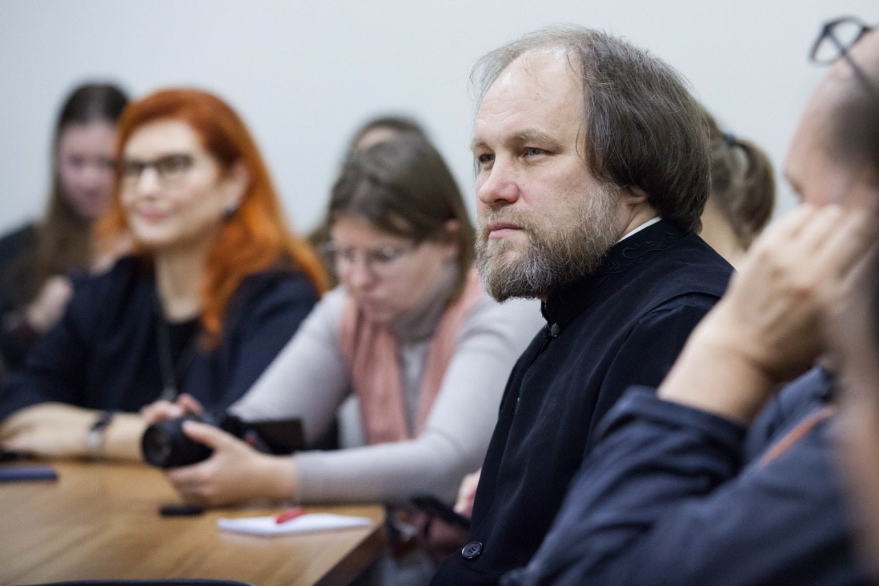 Заведующий фотослужбой пресс-службы Патриарха Московского и всея Руси иерей Игорь Палкин встретился 11 ноября со слушателями проекта "Фотошкола журфака" Высшей школы журналистики и массовых коммуникаций СПбГУ. Гостя приветствовал директор Анатолий Пую. Встречу провела куратор проекта Лолита Крылова.