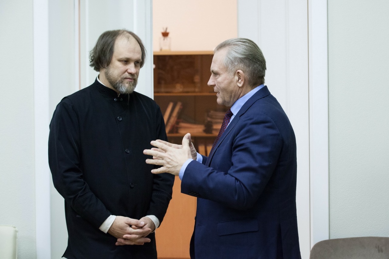 Отец Игорь рассказал о работе фотослужбы и о ее сотрудниках Сергее Власове и Олеге Варове. Сергей Николаевич работает в пресс-службе Патриарха почти 30 лет. По словам отца Игоря, именно он сформулировал важный принцип их работы: событие важнее, чем то, что о нем думает фотограф, который только присутствует, но не выставляет свое "я" в работе.