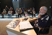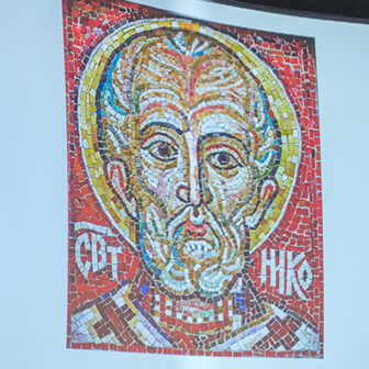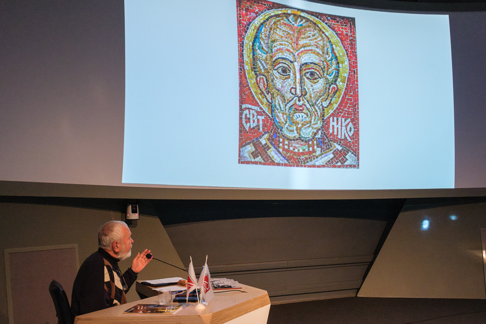 В кинозале Западного павильона Михайловского замка 21 ноября состоялась встреча с художником-монументалистом Виктором Татаренко, посвященная истории воссоздания изразцов часовни святого апостола Иоанна Богослова в деревне Наволок Лужского района Ленобласти (см. об этом в журнале "Вода живая" № 3 за 2025 год. - Прим. ред.).