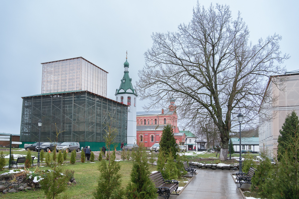 Настоятельский корпус 1853 года также будет восстановлен. Это очень важно, потому что там смогут жить все монахи - сейчас братия живет разрозненно; реставрация должна начаться в 2027 году. Готовится к реставрации и храм Иоанна Предтечи на Малышевой горе, и храм святителя Василия Кесарийского в деревне Чернавино, и 27-метровая монастырская колокольня. Среди 13 монастырских объектов есть руинированные. Это Преображенская церковь в деревне Чернавино, переданная в прошлом году в собственность обители, - храм XIX века стоит без куполов, без кровли. Были поданы документы на консервацию. Про уже упоминавшееся здание гимназии на Малышевой горе отец Филарет рассказал, что в начале года его хотели забрать у обители, но были найдены архивные документы, подтверждающие, что гимназия финансировалась по линии Синода, ее директором был священник. В середине нынешнего года был получен акт Росимущества о передаче здания Староладожскому Никольскому монастырю в собственность. Также поданы документы на консервацию.