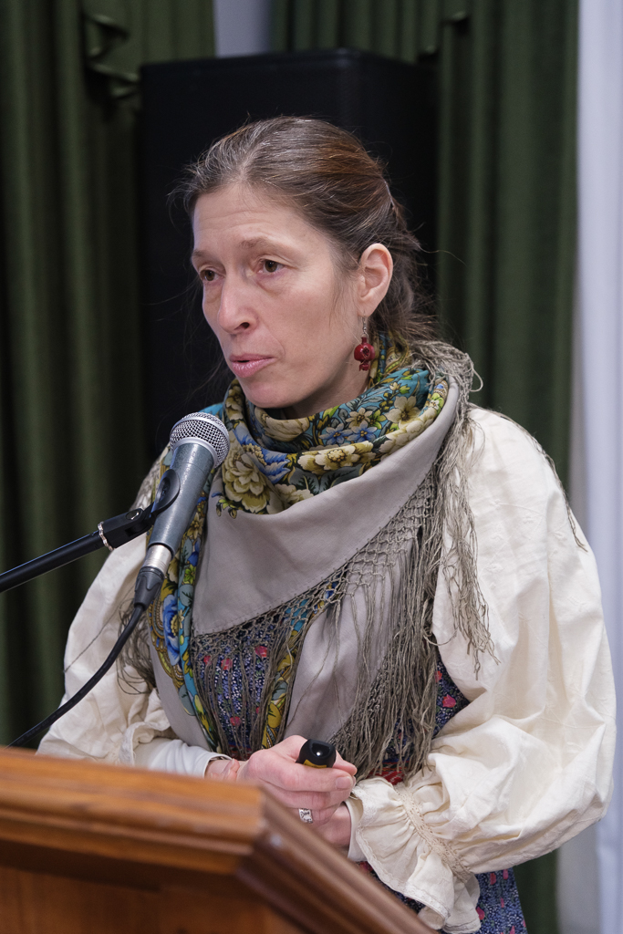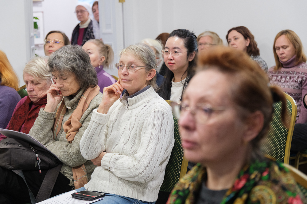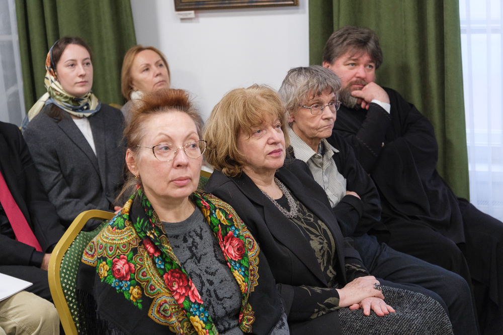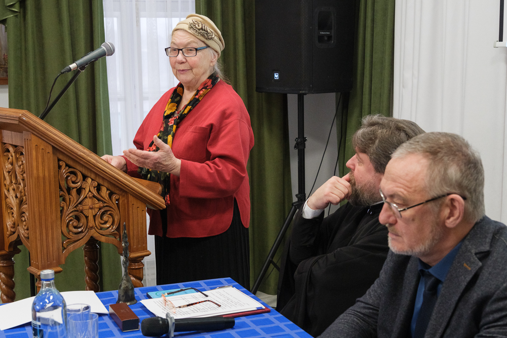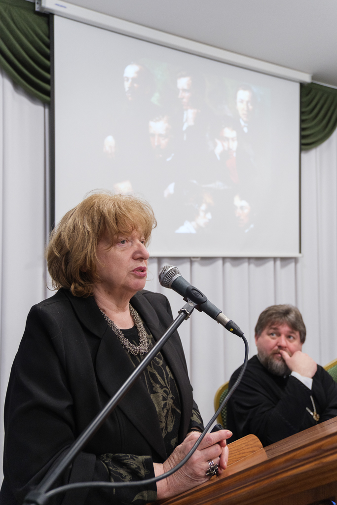 Член-корреспондент Петровской академии наук Татьяна Ганф выступила с сообщением "Семья игумении Ангелины, настоятельницы Иоанновского монастыря, в текстах Максимова". Много лет она занимается биографией схиигумении Ангелины (Сергеевой; 1867-1927), духовной дочери праведного Иоанна Кронштадтского. Анна, так звали игумению до пострига, родилась в Литейной части Санкт-Петербурга в крестьянской семье. Ее родные жили там с петровских времен, а происходили из села Большой Зеленец. Отец Анны был из бедной семьи, мать - из обеспеченной. Семья занималась очищением жилищ от вредных животных и насекомых. Дядя был старостой храма напротив Московского вокзала. Будущая игумения училась в хорошей гимназии. Василий Максимов проводил этнографические исследования об истории этой семьи. Исследовательница отметила его хороший язык, точность характеристик.
