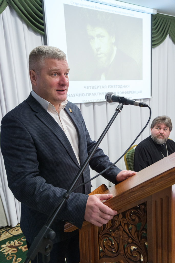 Преподаватель Санкт-Петербургского архитектурно-строительного колледжа, член ВООПИК Ленобласти Анна Мартынова-Фидельман в докладе "Василий Максимов в Новой Ладоге: страницы биографии" рассказала, что художник отказался от конкурса на большую золотую медаль, поскольку не хотел уезжать за границу. Его интересовала Россия. Он отправился на Волгу, жил близ Рыбинска. Картина "Первый хлебный караван в Рыбинске", над которой он работал там, утрачена, остались только этюды. Помимо занятий живописью художник принимал участие в работе Этнографического бюро Вячеслава Тенишева, был корреспондентом по Новоладожскому уезду, рассказывал об истории и современной ему жизни этих мест. К отчетам прилагались фотографии и рисунки. Докладчица рассказала о судьбе некоторых исторических зданий в Старой Ладоге, в частности - о проекте реставрации здания двухклассной женской гимназии, которое передано обители, но находится в очень плохом состоянии.