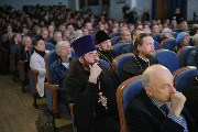 Наместник Александро-Невской лавры епископ Кронштадтский Вениамин в приветственном слове отметил, что жизнь и служение первого Патриарха Московского после восстановления патриаршества в Русской Православной Церкви останутся примером верности Христовым заповедям в условиях испытаний и гонений. Избранный в октябре 1917 года, Патриарх Тихон сыграл ключевую роль в сохранении единства и духовной силы нашей Церкви в период революционных потрясений начала XX века. Деятельность святителя Тихона была направлена на укрепление церковной организации, сохранение канонического порядка и защиту духовных ценностей православия перед лицом серьезных испытаний. Особое значение имело его пастырское послание от 19 ноября 1917 года, призывающее верующих соблюдать мир и порядок в условиях начавшегося раскола российского общества.