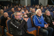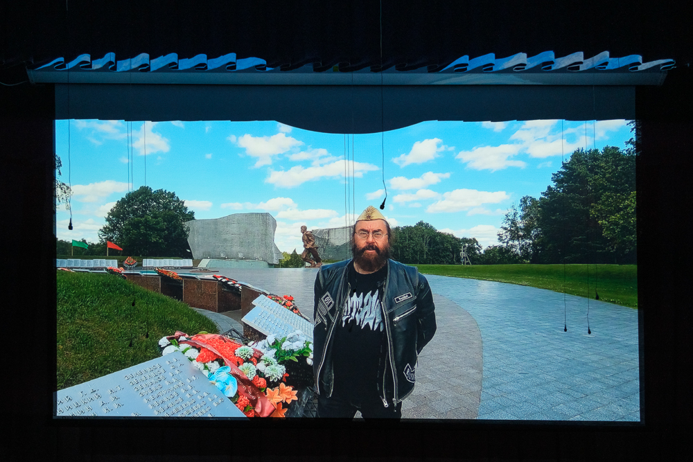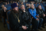 По традиции, вечер начался с показа сюжета о мотопаломничествах, проводимых отцом Вячеславом по местам боев и захоронений времен войны.