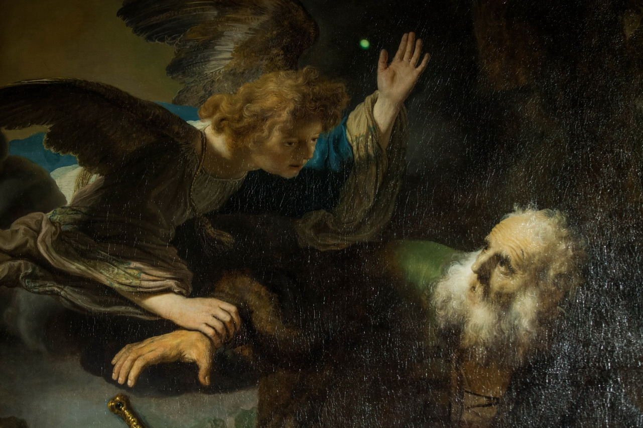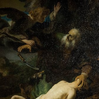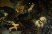 В картине "Жертвоприношение Авраама" Рембрандт обратился к хорошо известному сюжету из Ветхого Завета: Авраам, чтобы доказать крепость своей веры, должен принести в жертву любимого сына Исаака.