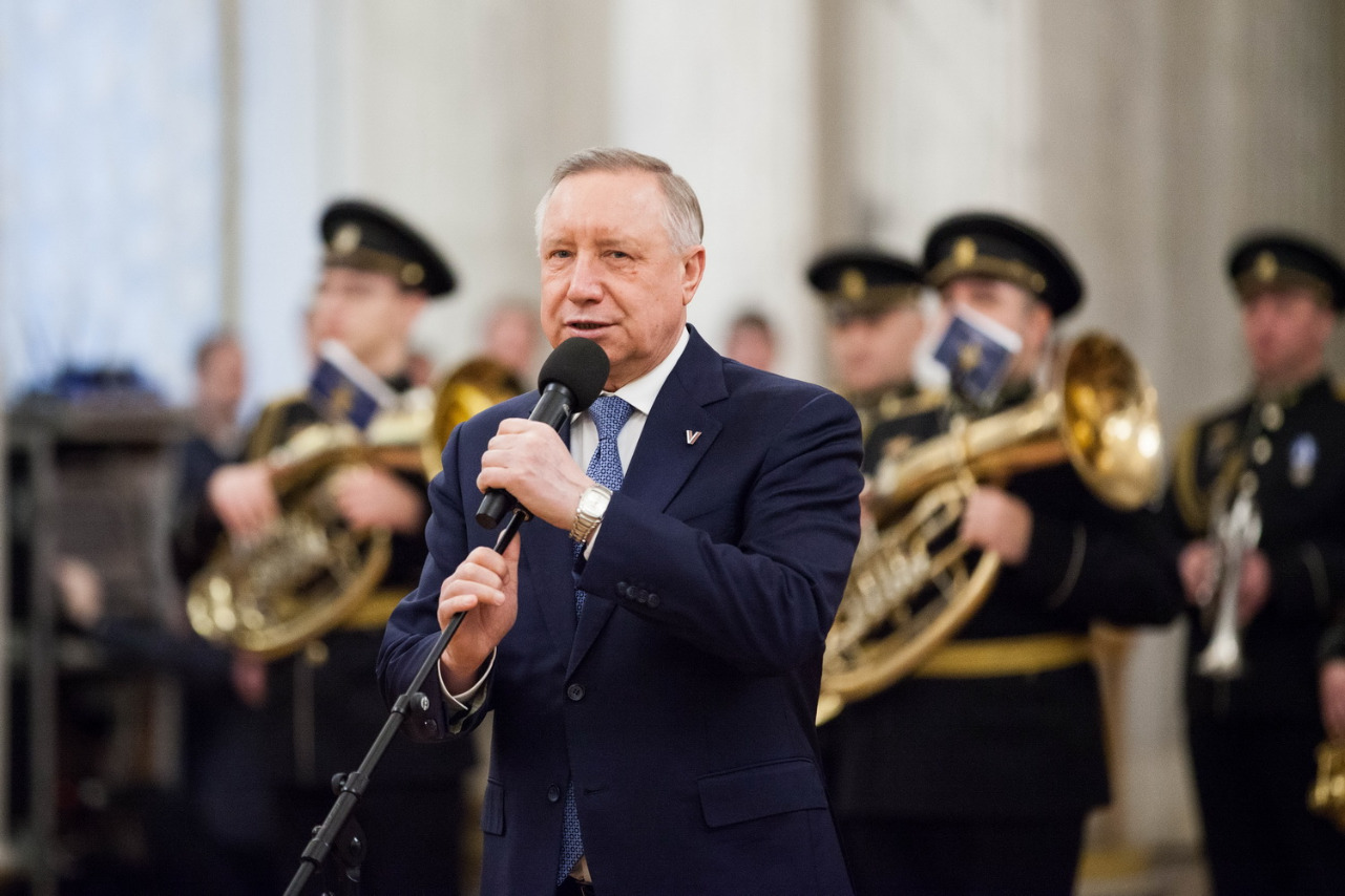 В этом году торжественная церемония из Георгиевского зала Зимнего дворца впервые была показана в прямом эфире телеканала "Санкт-Петербург".
