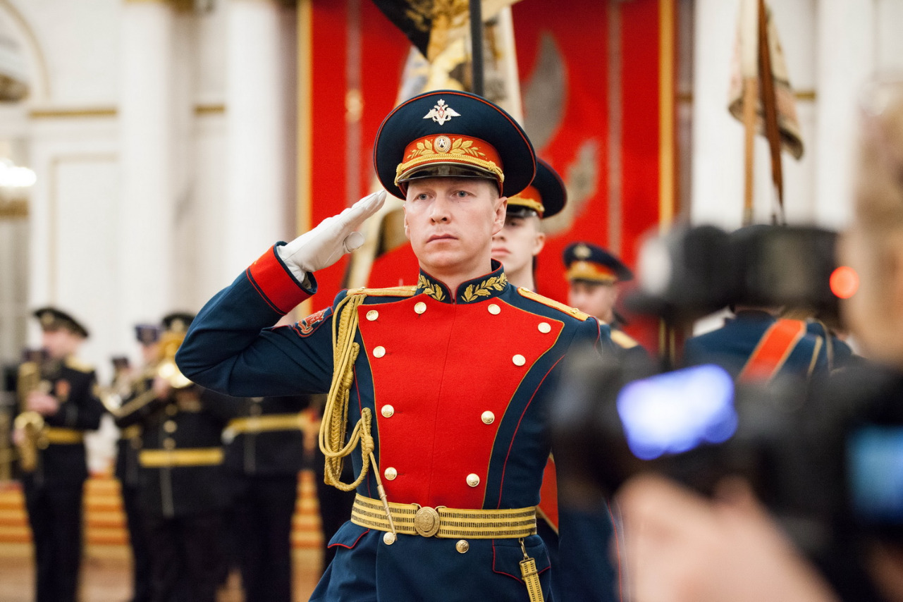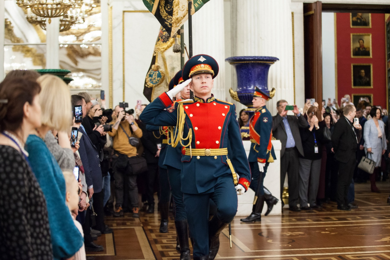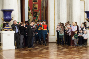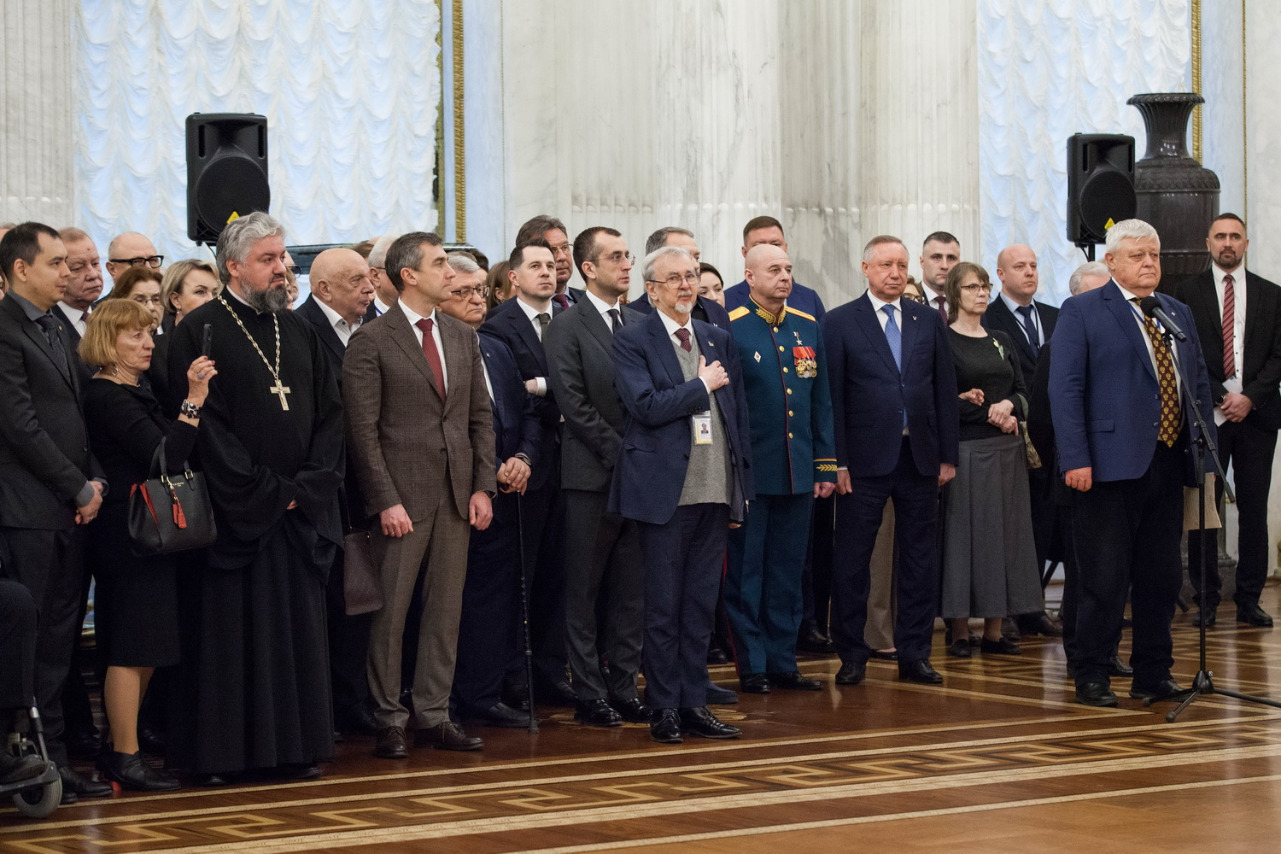 В церемонии приняли участие губернатор Александр Беглов, директор Эрмитажа Михаил Пиотровский, его заместитель, государственный герольдмейстер Георгий Вилинбахов, командующий Северо-Западным округом войск национальной гвардии РФ генерал-майор Сергей Бураков.