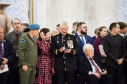 В зал были внесены Георгиевский эскадронный штандарт Глуховского Кирасирского полка, Георгиевский штандарт 7-го Белорусского гусарского полка, Георгиевское знамя 152-го пехотного Владикавказского полка, Георгиевское знамя 81-го Кабардинского пехотного полка.