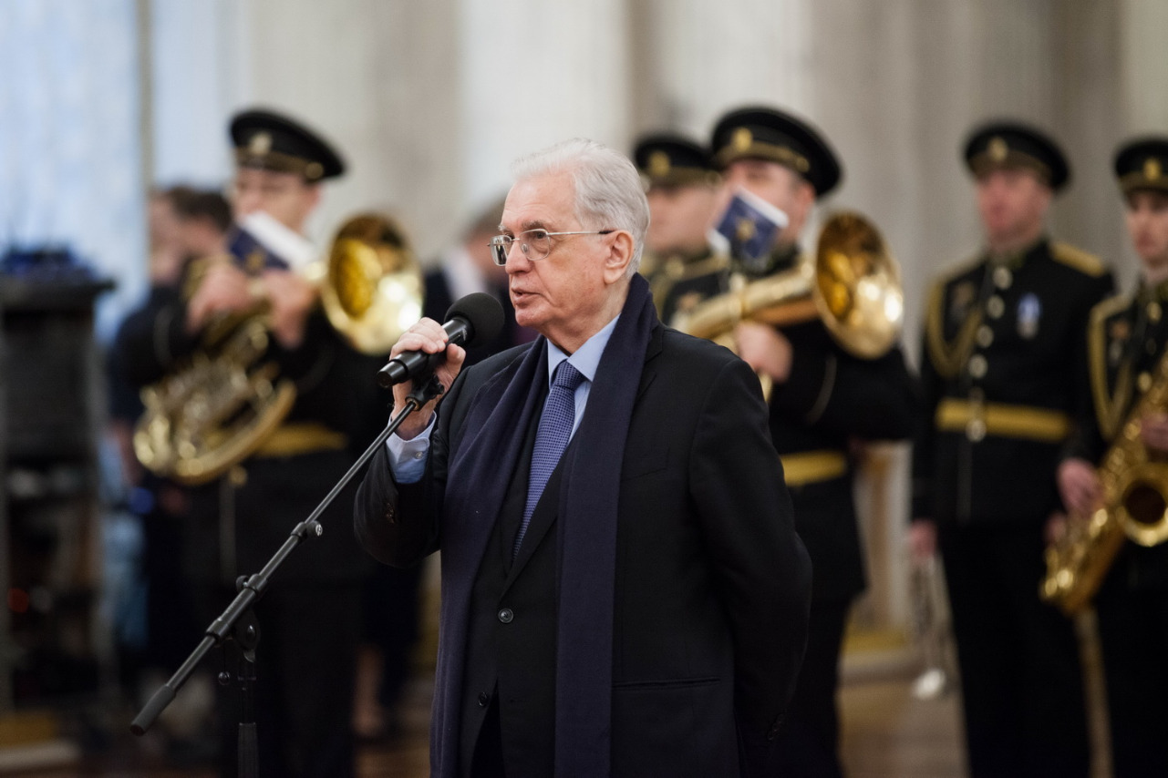 "Поздравляю вас с Днем святого Георгия, с Днем героев Отечества, - сказал Михаил Пиотровский. - Георгиевский зал, его стены всегда помнили этот праздник. Здесь был прием в честь кавалеров ордена святого Георгия - главного ордена Российской империи. Пришло время, когда Эрмитаж восстановил тронное место и стал проводить торжественную церемонию. Мы продолжаем наш большой музейный и городской праздник - Дни Эрмитажа. Мы проводим эту церемонию с 1996 года - праздник возродился на государственном уровне, и теперь вся страна отмечает этот день. Музей хранит историческую память, возрождает ее, передает следующим поколениям".