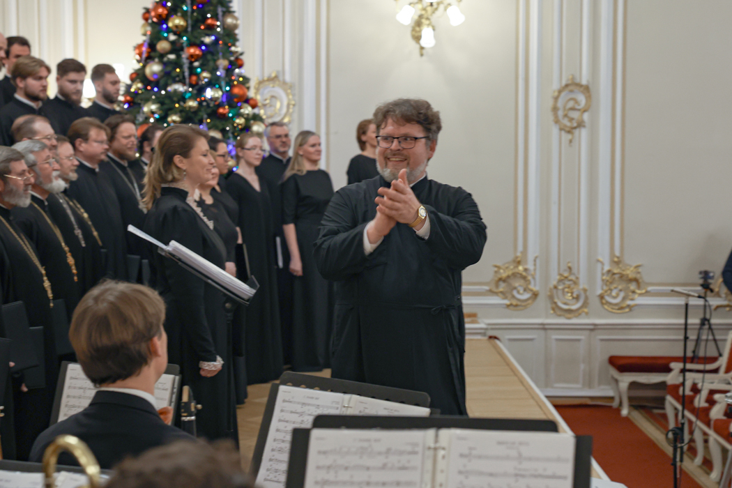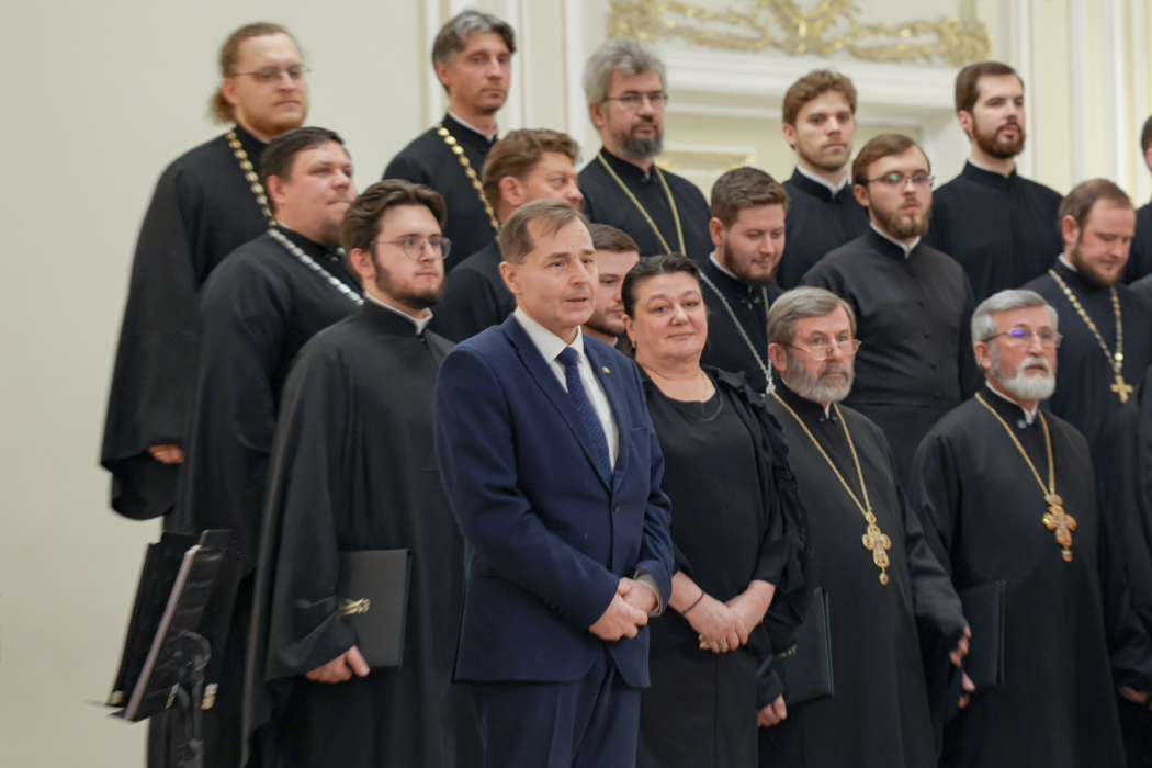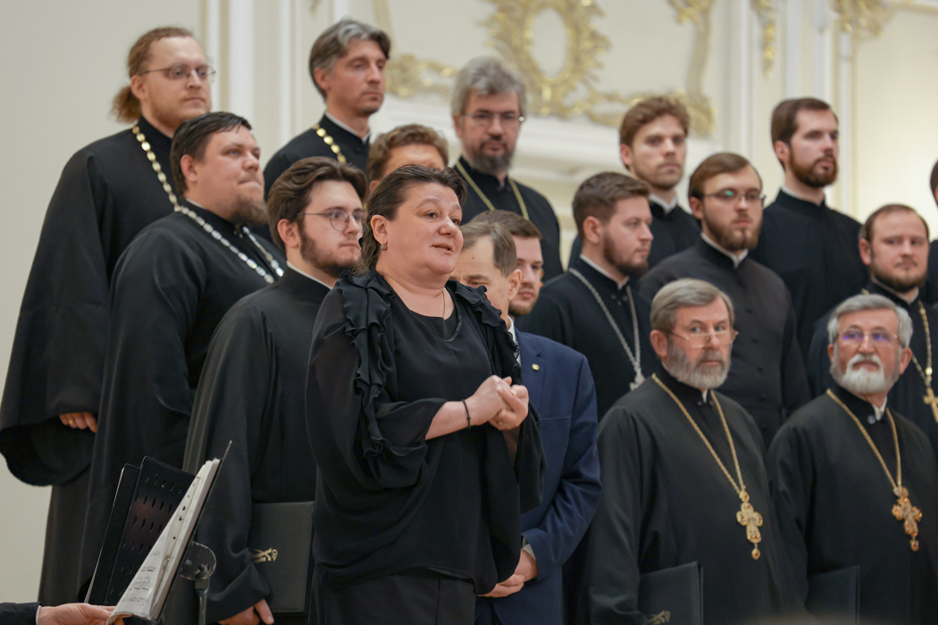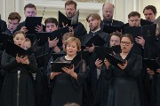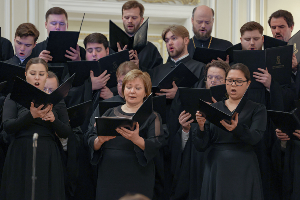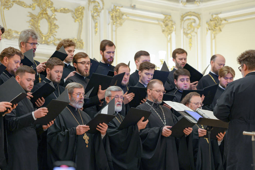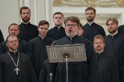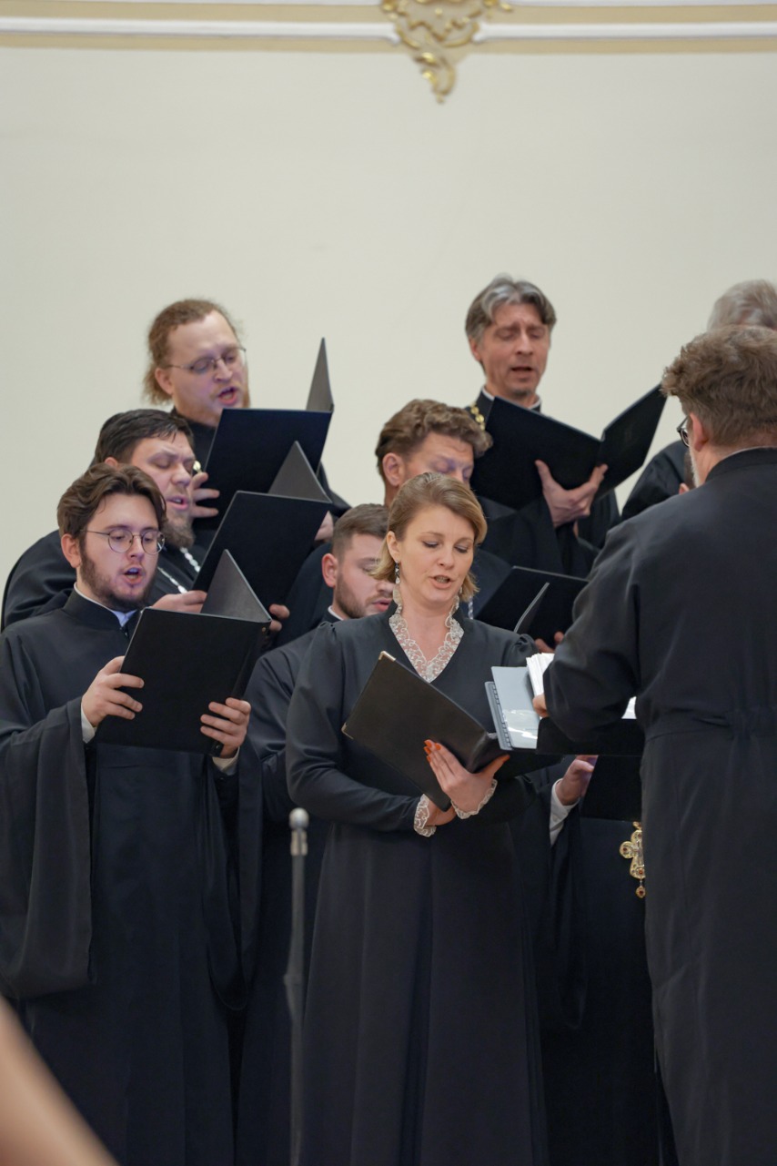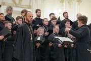 Вечер завершила кантата "Стих об Алексее, Божьем человеке" Николая Римского-Корсакова в исполнении хора духовенства, женского состава хора собора апостолов Петра и Павла в Петергофе и ансамбля "Кронверк-брасс".