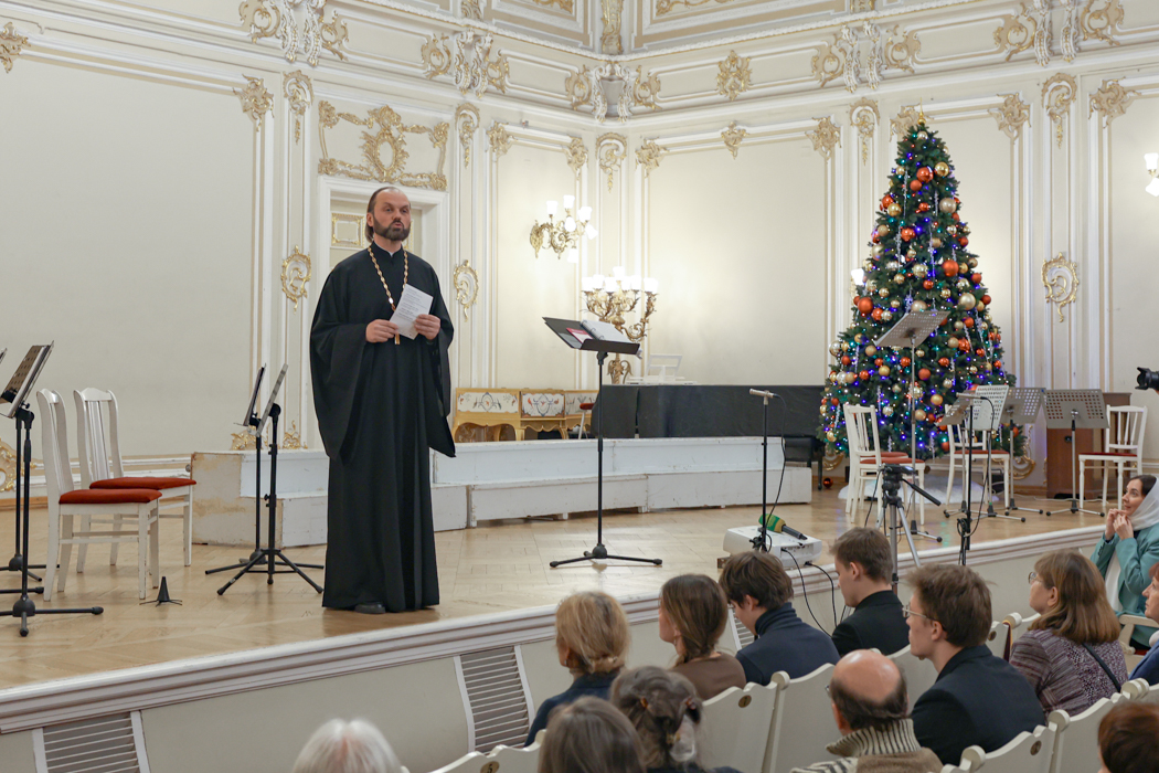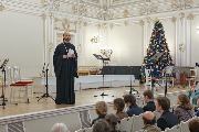 Открывая вечер, руководитель епархиального совета по культуре иерей Илия Макаров рассказал, что сбор будет адресным - он вместе с командой петербургских волонтеров отвезет подарки в Мариуполь и Бердянск. Это доброе дело - рождественский привет, поздравление городу-побратиму Мариуполю.