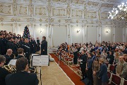 В приветственном слове руководитель городского отдела по связям с религиозными объединениями Владимир Иванов напомнил, что митрополит Санкт-Петербургский и Ладожский Варсонофий в проповедях часто говорит, что слова - это хорошо, но важны дела, и выразил надежду, что этот вечер объединит сердца всех, кто присутствует в зале.
