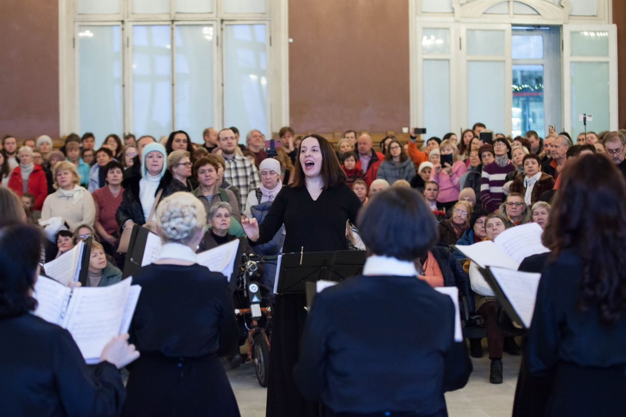 Женский хор Санкт-Петербургской митрополии выступил 28 декабря в Картинном зале Витебского вокзала в рамках проекта "Хоровые сезоны на Витебском".