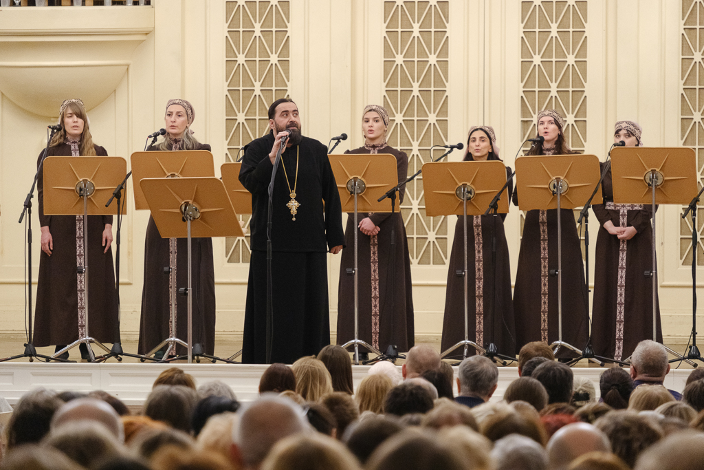 В исполнении отца Серафима и хора прозвучали песнопения на новоарамейском, грузинском и мегрельском языках. Поскольку хор приехал не полностью, гостям помогали певчие хора "Знамение" - отец Серафим отметил, что они очень волновались, но он сказал: "Полностью доверимся Богу, и всё будет хорошо!" Нижний басовый голос - исон (в переводе с древнегреческого - "ровный, неподвижный") исполняли известные петербургские басы Виктор Хапров, Дмитрий Шишкин и Владимир Миллер (бас-профундо).
