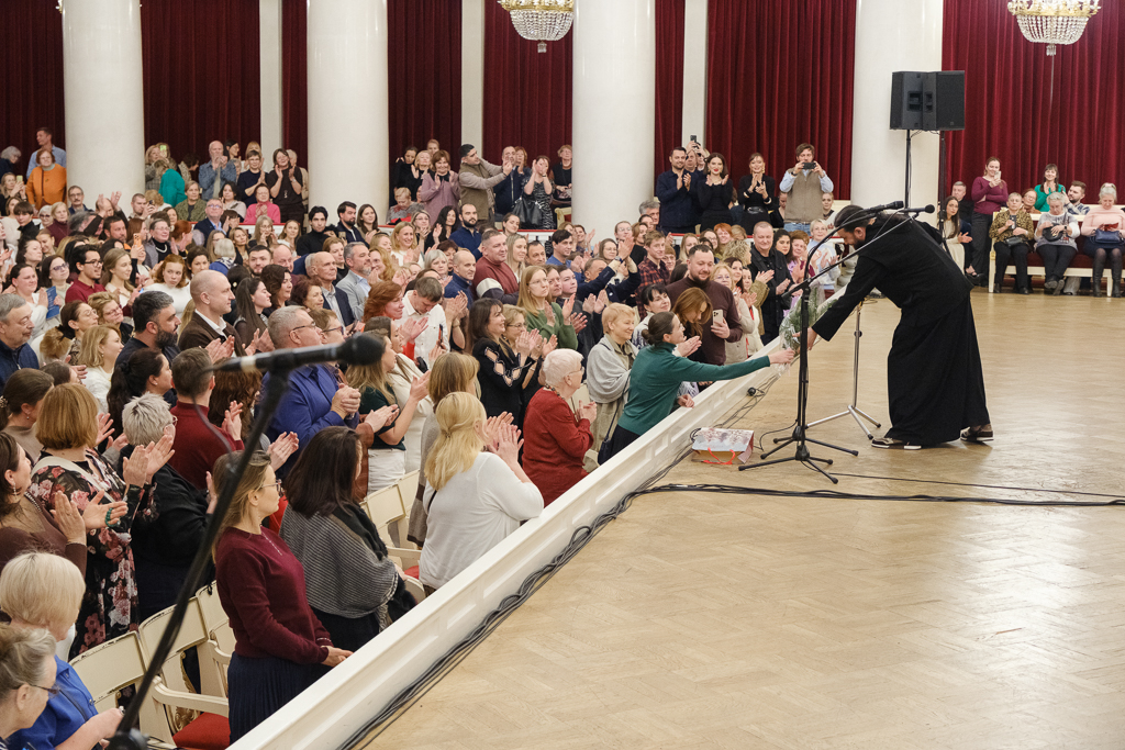 Отец Серафим сказал, что за день до концерта скончался его дядя, и попросил помолиться за упокой души раба Божия Руслана. От также попросил присутствующих спеть "Многая лета" его отцу, который недавно перенес инфаркт. Весь зал спел "Многая лета", отец Серафим включил на телефоне трансляцию, чтобы болящий мог видеть это в прямом эфире.