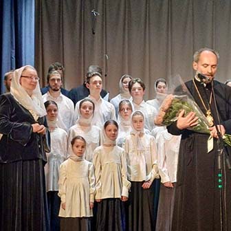 В завершение в исполнении певчих всех поколений прозвучал "Гимн собора Владимирской иконы Божией Матери" - первая композиция, написанная Ириной Болдышевой для этого хора.