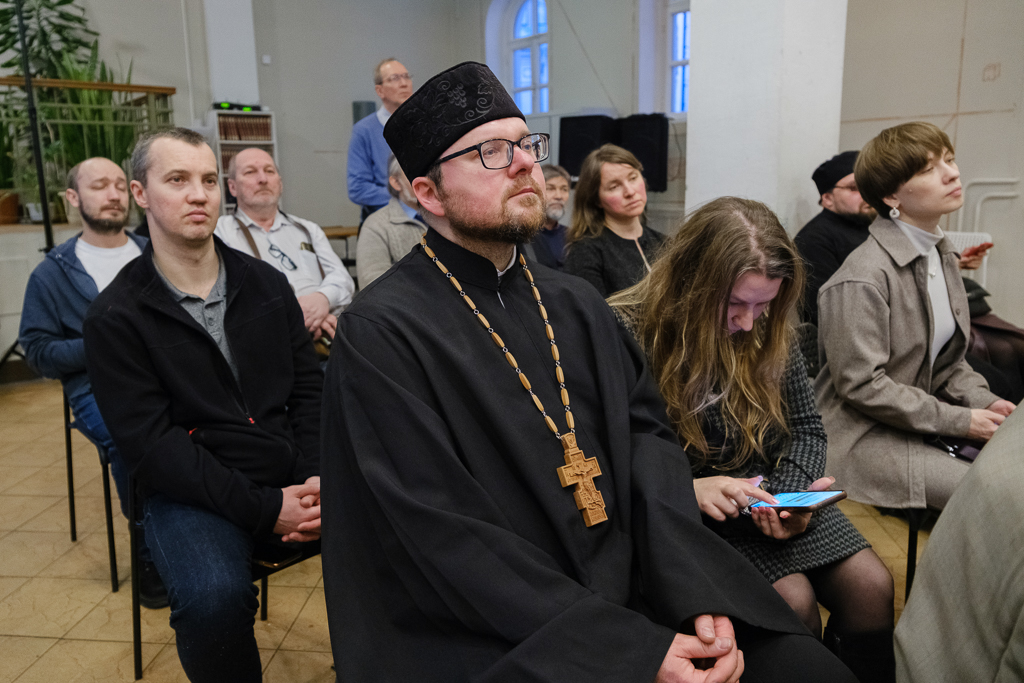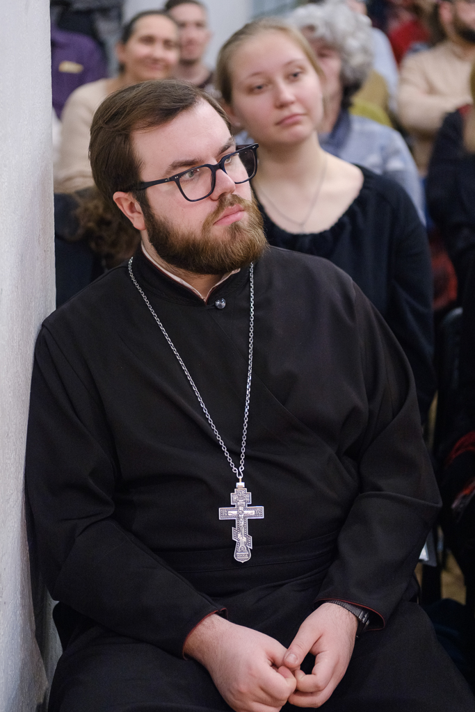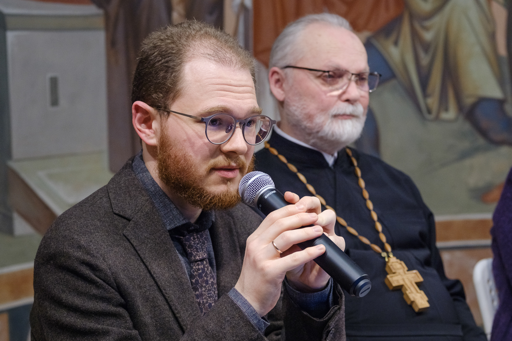 Настоятель протоиерей Александр Сорокин отметил, что он тоже не чужд темы переводов, при этом может защищать как церковнославянский язык, так и русский.