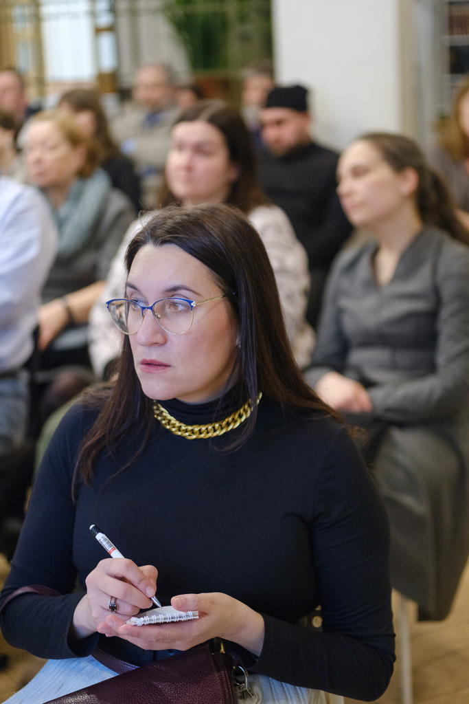 В презентации участвовали автор перевода иерей Георгий Кочетков и переводческая группа СФИ - Зоя Дашевская, Петр Озерский и Яна Пантуева. Вела встречу профессор СФИ Юлия Балакшина.