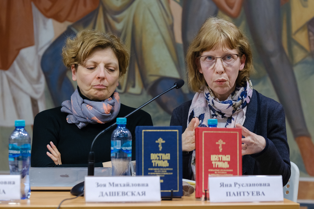 Презентация новых переводов с древнегреческого книг "Постная триодь: Избранные песнопения на русском и церковнославянском языках" и "Цветная триодь: Избранные песнопения на русском и церковнославянском языках" состоялась 6 марта в просветительском центре Феодоровского собора. Книги были выпущены издательством Свято-Филаретовского института (СФИ) в 2025 году.