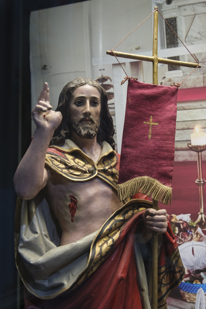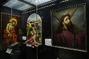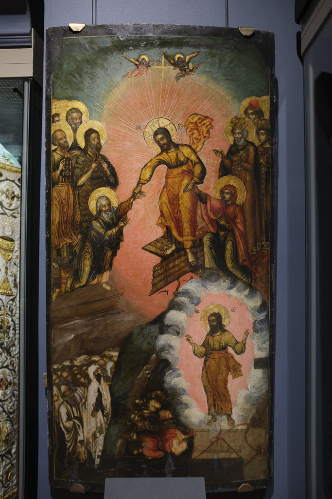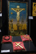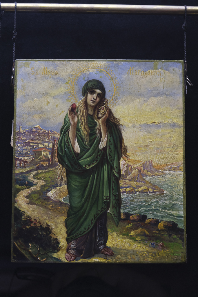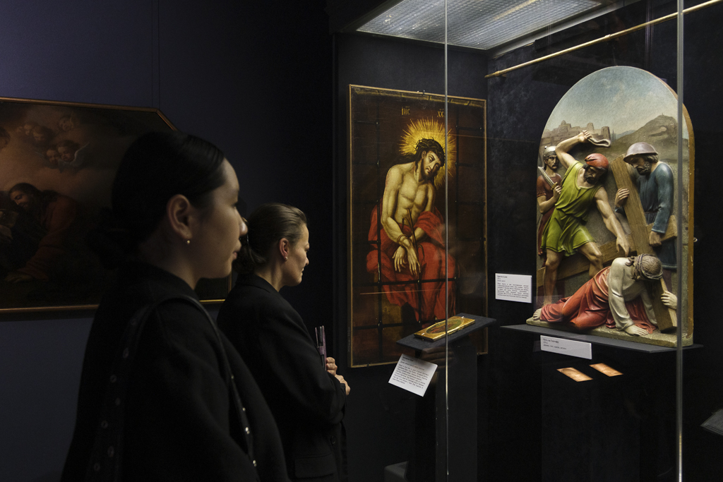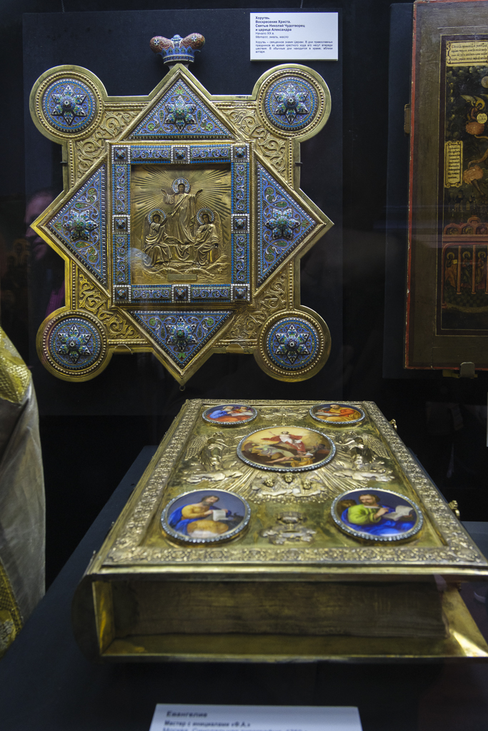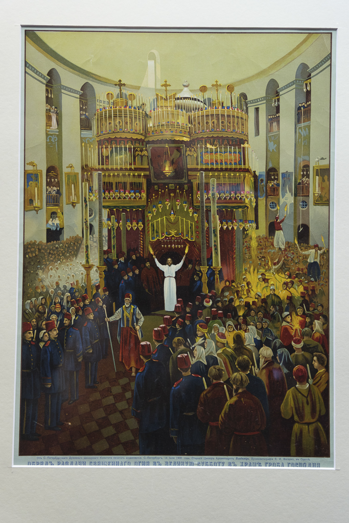 Среди экспонатов - полотно Михаила Нестерова "Воскресение Христа" (1922), пасхальные яйца из фарфора (XIX в.), яркие пасхальные открытки, три пасхальных стола, на которых представлены иудейский седер, православная и католическая праздничные трапезы.