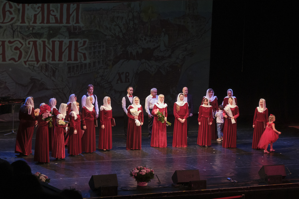 Открыл концерт хор "Астрон" под управлением Ирины Прусаковой. Он исполнил пасхальные песнопения. Этот год для хора - особый: 16 сентября отмечается 20 лет его создания.