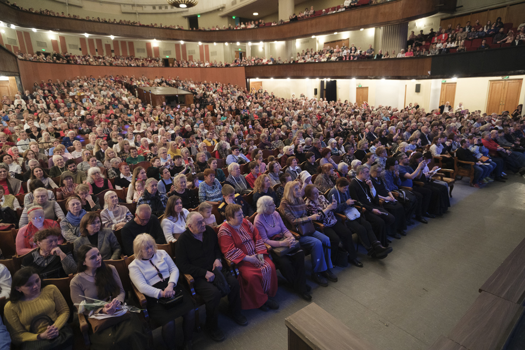 С приветствием к собравшимся обратился наместник Александро-Невской лавры епископ Кронштадтский Вениамин. Владыка попросил дать свет в зал и отметил, что зал полон.