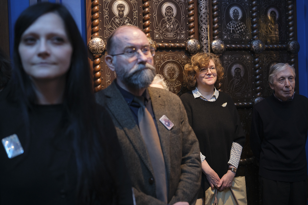 О работе над выставкой рассказали исполняющая обязанности главного хранителя Музея городской скульптуры Онорина Бабина, хранитель фондов ГМИР Елена Николаева, коллекционер Александр Савинов, председатель городского архивного комитета Петр Тищенко.