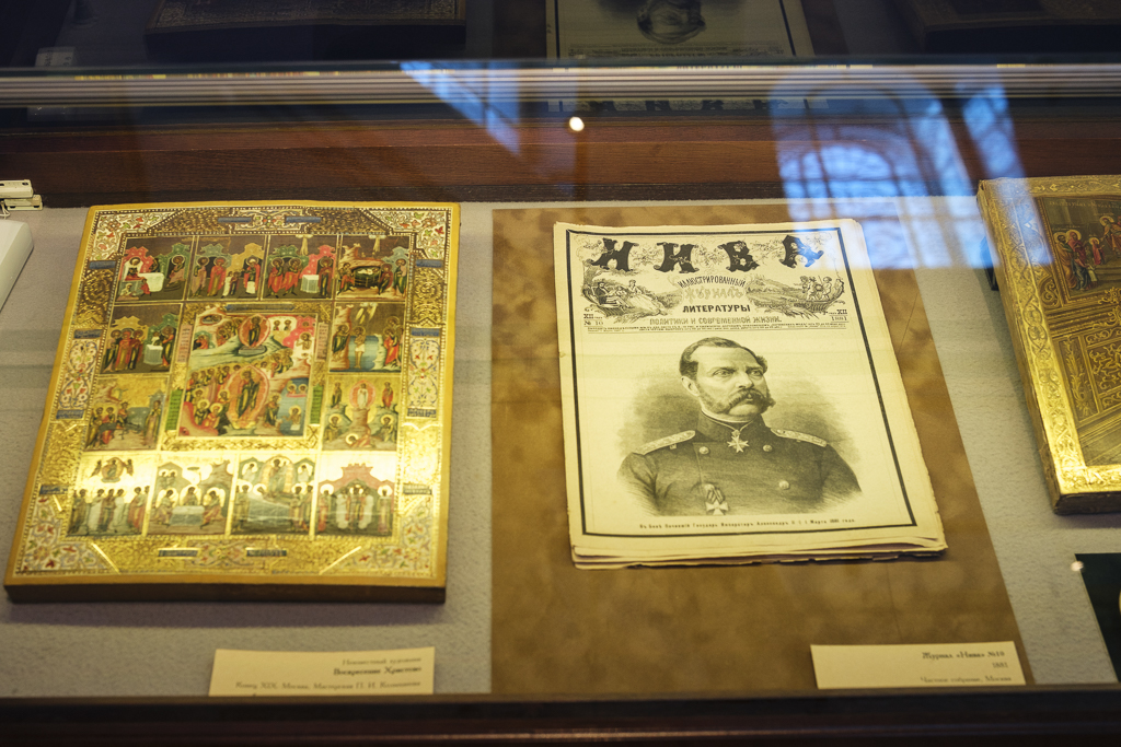 На выставке немало икон XIX - начала XX века, характеризующихся усложненной иконографией. Среди сюжетов - Сошествие во ад, восстание Христа из гроба, сюжеты Страстной седмицы, Воскресения Христова и Вознесения. Представлены иконы святого благоверного князя Александра Невского, небесного покровителя императора, предметы церковной утвари, поступившие в храм в начале XX века в качестве даров от частных лиц и организаций, - выносной крест, дарохранительница и другие.