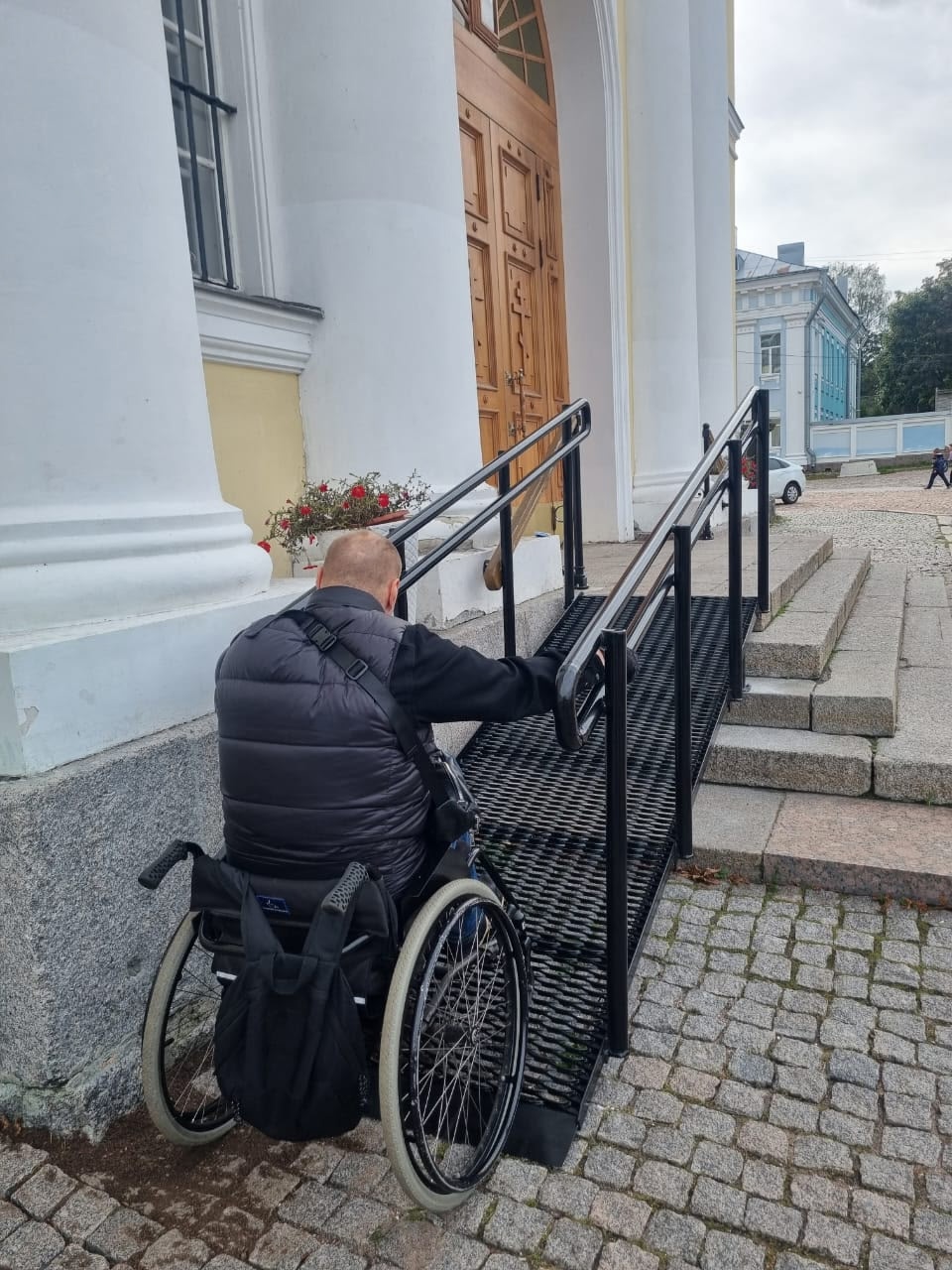 У Спасо-Преображенского кафедрального собора города Выборга при входе в храм установлен новый пандус.