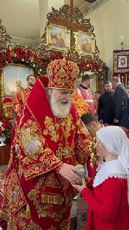 Затем воспитанники детской воскресной школы Христорождественского подворья поздравили правящего архиерея со Светлым Воскресением Христовым, исполнив праздничную пасхальную постановку. Владыка тепло поблагодарил за поздравление, произнёс проповедь и преподал всем молящимся архипастырское благословение.