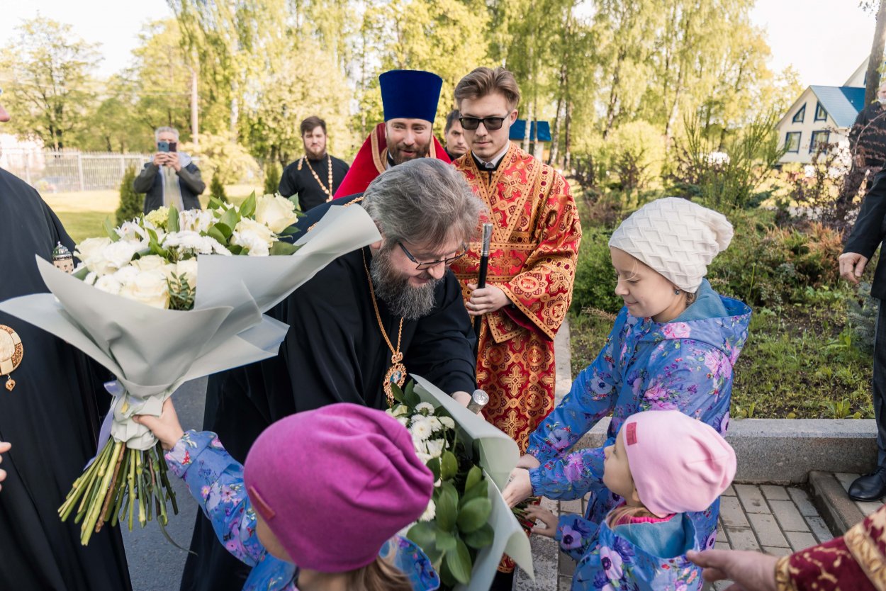 Архипастырям сослужил наместник Коневского Рождество-Богородичного монастыря архимандрит Александр (Арва), настоятель храма, благочинный Рощинского округа, секретарь управления Выборгской епархии, протоиерей Дионисий Холодов, и сонм клириков Выборгской епархии.