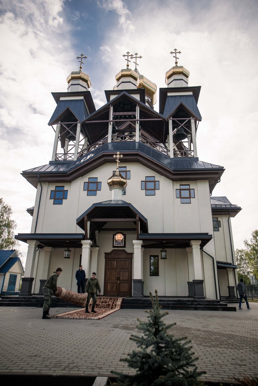 ... 22 мая 2021 года, в день памяти перенесения мощей святителя Николая, Мирликийского Чудотворца, епископ Выборгский и Приозерский Игнатий в сослужении епископа Тихвинского и Лодейнопольского Мстислава, епископа Вяземского и Гагаринского Сергия и епископа Рославльского и Десногорского Мелетия совершил чин Великого освящения в Никольском храме поселка Рощино ...