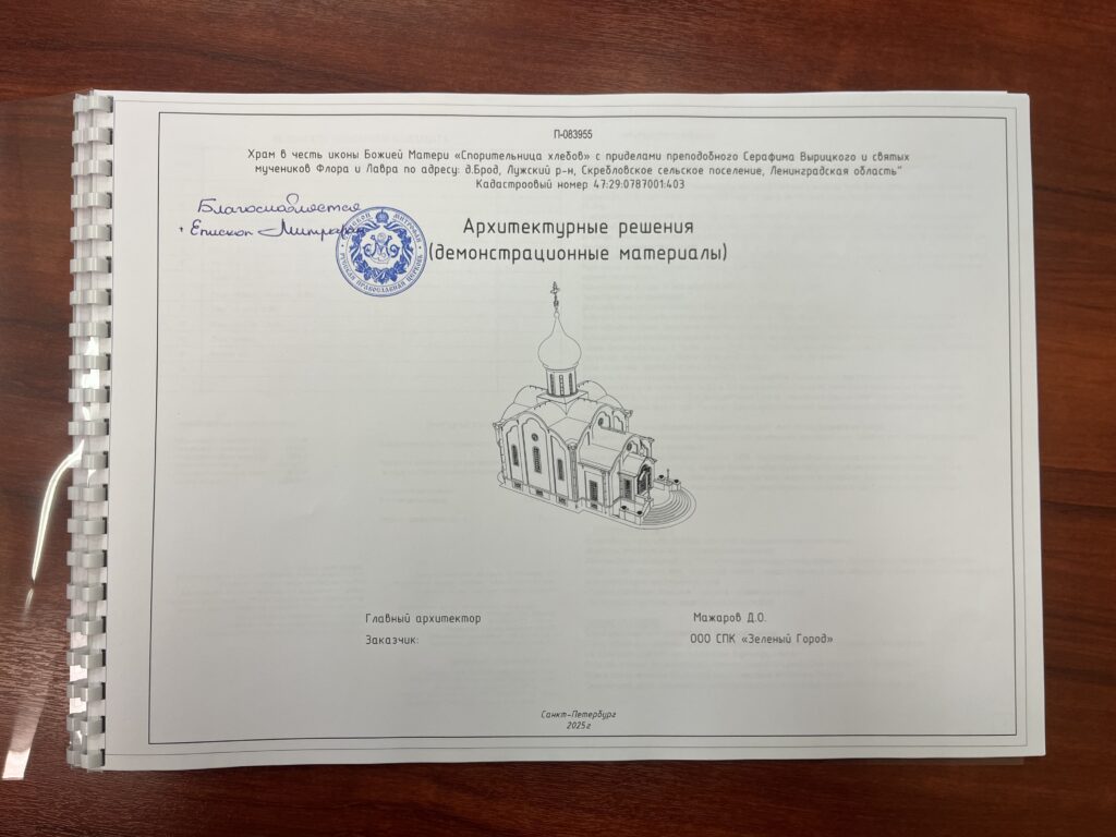 Важно отметить, что духовное основание этой стройки было заложено ранее: 3 ноября 2025 года епископ Митрофан совершил торжественный чин освящения закладного камня на месте будущего строительства. Нынешнее согласование архитектурного облика храма стало следующим важнейшим шагом, позволяющим приступить к полноценным строительным работам. Проект, представленный на утверждение Правящему архиерею, разработан архитектором Д. О. Можаровым. В нем гармонично сочетаются традиции русского церковного зодчества и современные инженерные решения, что позволит новому храму стать подлинным украшением ландшафта Лужского района.