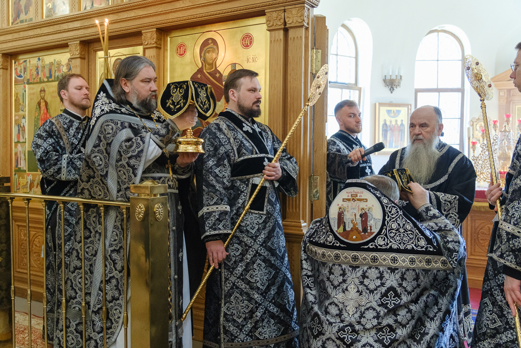 За богослужением также молились секретарь епархиального управления протоиерей Сергий Куксевич, ключарь собора протоиерей Андрей Герасимов, председатель приходского совета протоиерей Александр Пашков, духовенство собора.