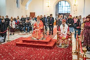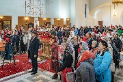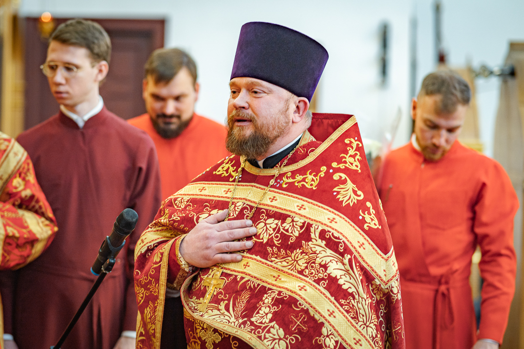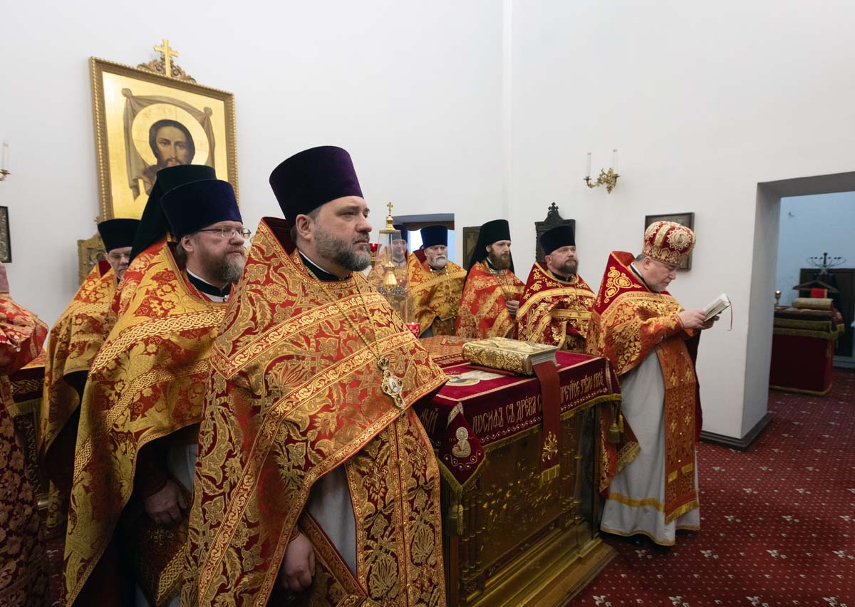 Его Высокопреосвященству сослужили епископ Кронштадтский Вениамин, секретарь епархиального управления протоиерей Сергий Куксевич, благочинный Адмиралтейского округа протоиерей Алексий Скляров, настоятель протоиерей Александр Гаврилов с клиром и другие священнослужители.