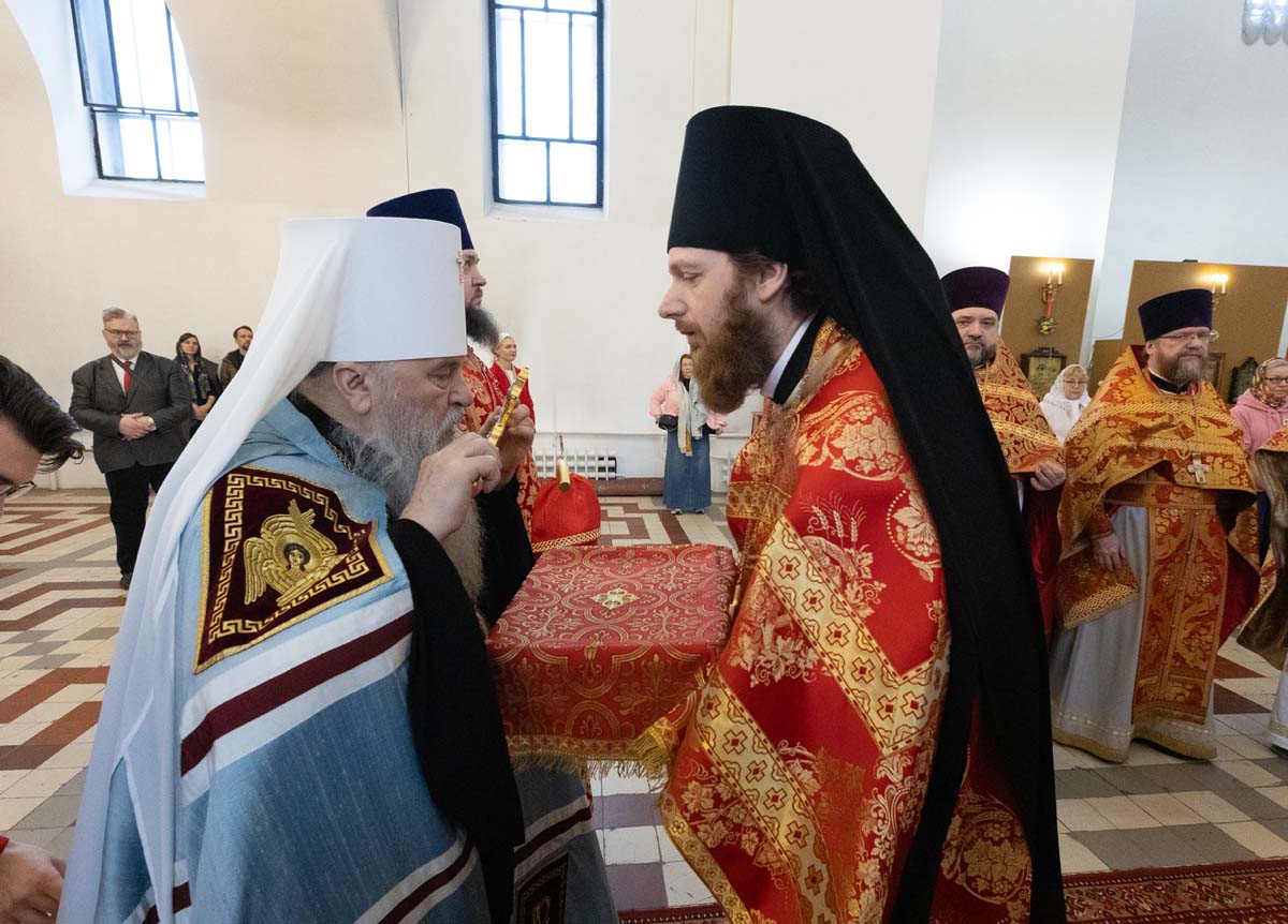 В понедельник Светлой седмицы, 21 апреля, митрополит Санкт-Петербургский и Ладожский Варсонофий совершил Божественную литургию в храме Воскресения Христова на Обводном канале.