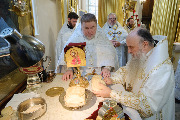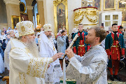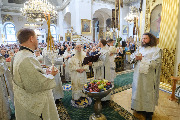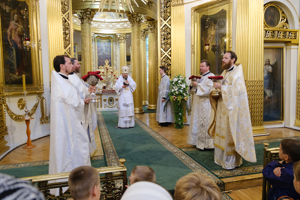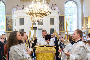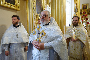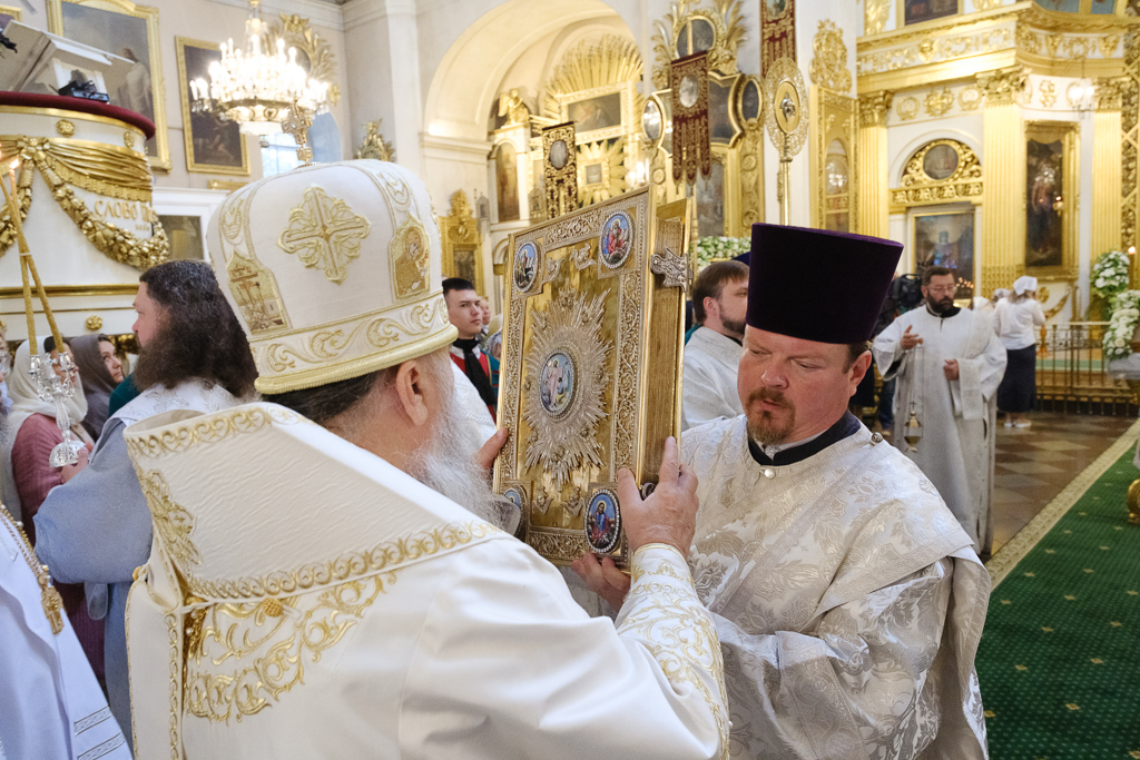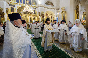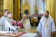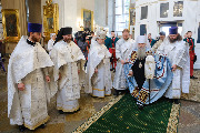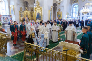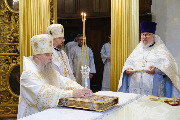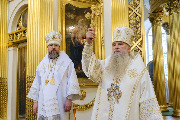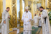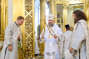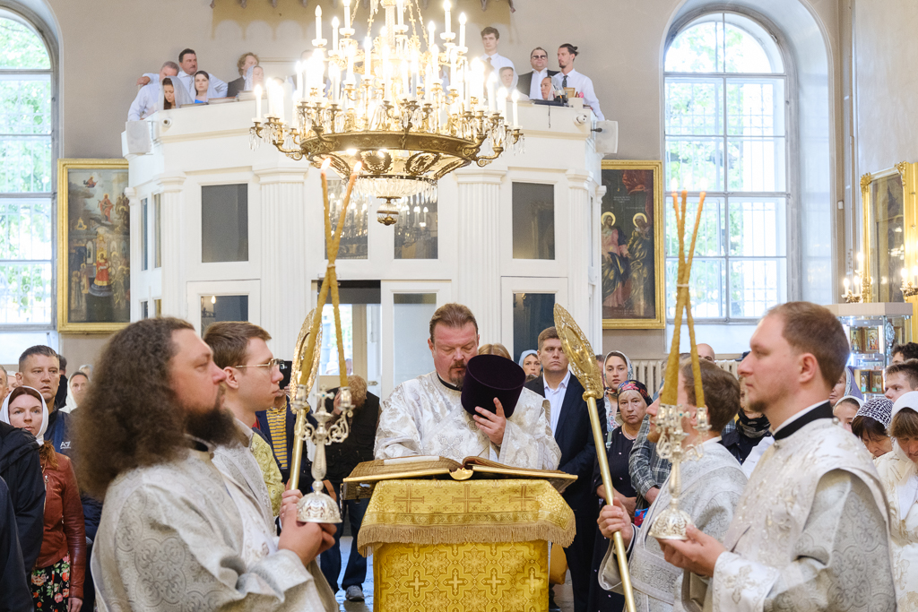 Его Высокопреосвященству сослужили епископ Кронштадтский Вениамин, секретарь епархиального управления протоиерей Сергий Куксевич, настоятель протоиерей Николай Брындин с клиром и другие священнослужители.