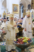 Настоятель поблагодарил владыку за совместную молитву и подарил архиереям по корзине фруктов.