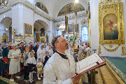 "Поэтому будем ходить в храмы Божии. Здесь наш Фавор, здесь мы получаем благодать, слышим Слово Божие, здесь Господь нас согревает, и мы вслед за апостолом Петром повторяем: "Господи! хорошо нам здесь быть" (Мф. 17:4). Все наши заботы, труды земные остаются позади. Мы только с Тобою, и нам радостно. Поэтому каждый должен входить на свой Фавор через молитву и добрые дела. Пока мы стоим еще на первой ступени этой лестницы. Мы должны очищать сердце, каяться, причащаться, постепенно поднимаясь по лестнице все выше и выше. Каждая ступенька будет даваться нелегко, но у нас только один путь - вперед и вверх. Поздравляю вас с праздником и желаю, чтобы Господь просветил нас, указал нам путь в Царствие Небесное", - завершил проповедь митрополит Варсонофий.