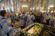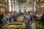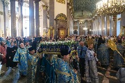 "Мы не просто вспоминаем Богородицу - Она всегда жива в нашей памяти, - продолжил архипастырь. - Она жива вообще, потому что была взята на Небо Сыном Божиим, оттуда видит и благословляет нас, собравшихся проститься с Ней, подобно апостолам в Сионской горнице, где Она жила с Иоанном Богословом в Свои последние годы. Так и мы, словно из Сионской горницы, совершили крестный ход в Гефсиманию, где было погребено тело Пречистой Девы. На третий день по Успении Она была взята с уже преображенным телом на Небо, и оставила на земле только Свои пелены и пояс".