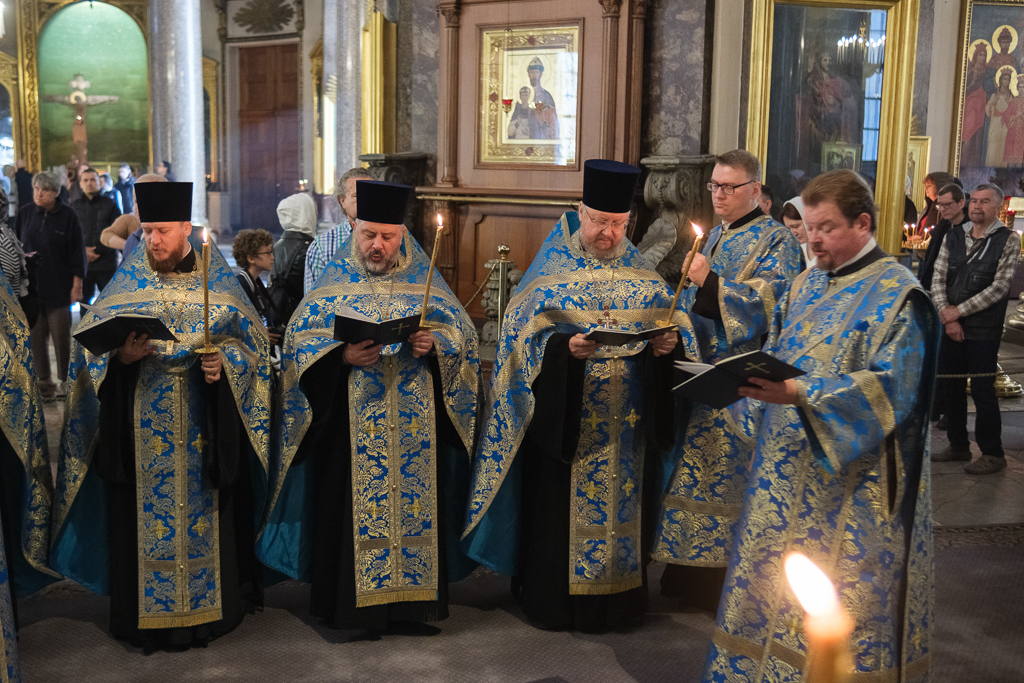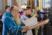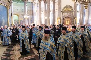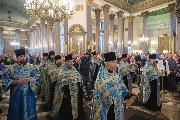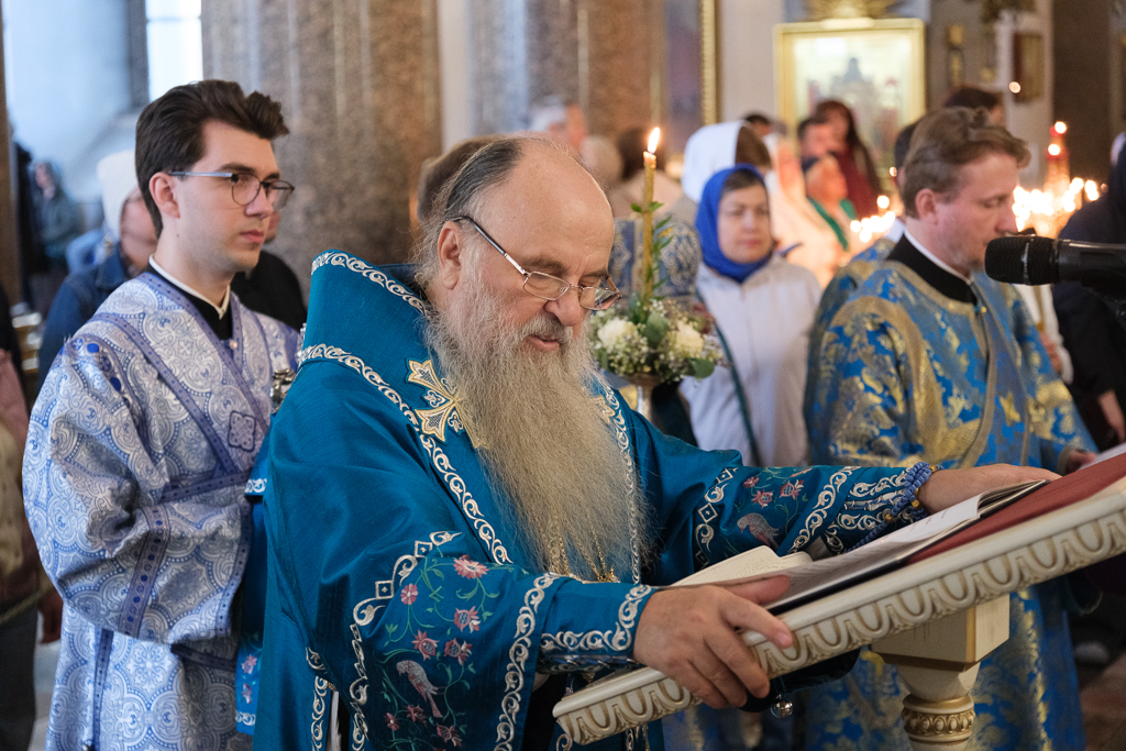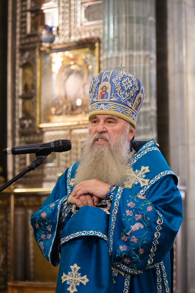 Его Высокопреосвященству сослужили ключарь протоиерей Андрей Герасимов, председатель приходского совета протоиерей Александр Пашков, клир собора и другие священнослужители.
