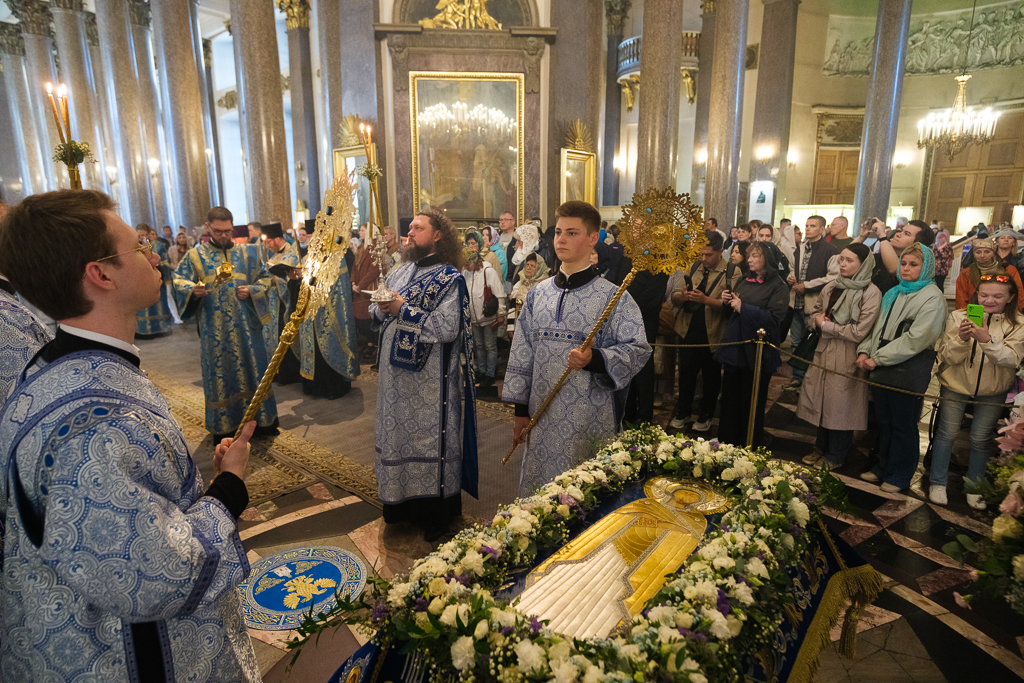 Был совершен крестный ход по периметру внутри храма с плащаницей Богородицы.