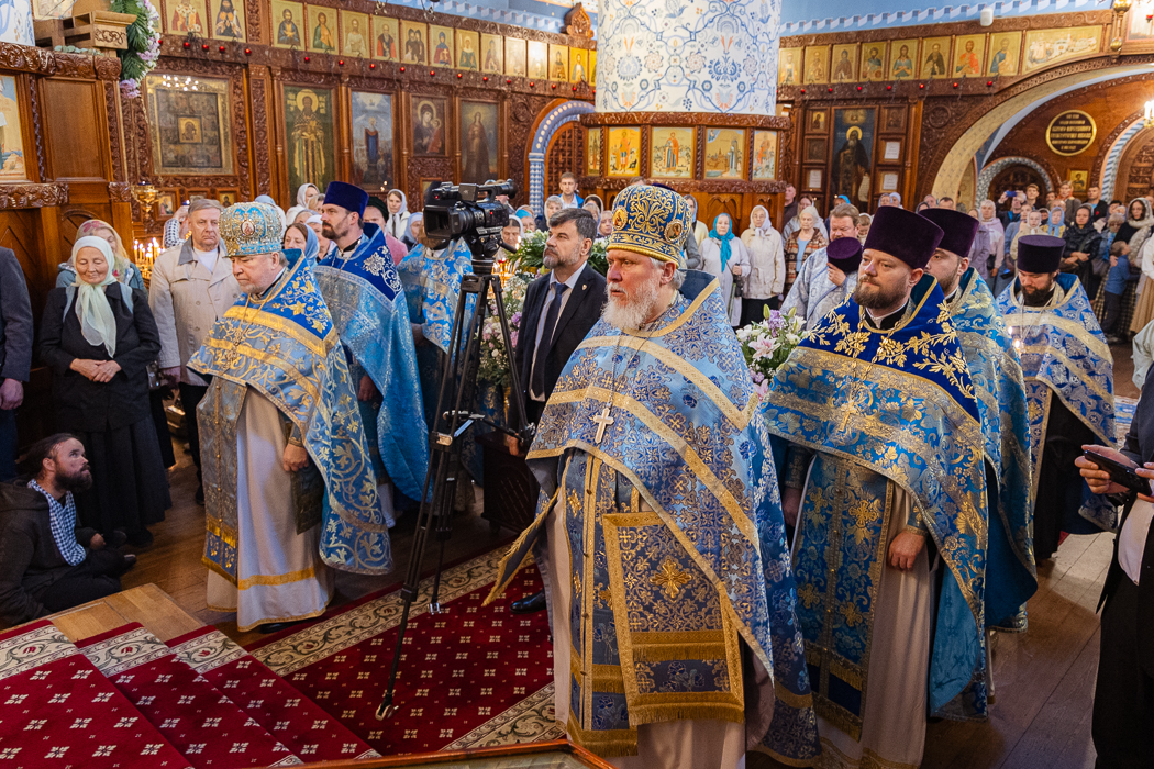 Его Высокопреосвященству сослужили епископ Кронштадтский Вениамин, секретарь епархиального управления протоиерей Сергий Куксевич, почетный благочинный Пушкинского округа протоиерей Геннадий Зверев, благочинный Пушкинского округа протоиерей Никита Зверев, настоятель иерей Герман Ранне с клиром и другие священнослужители.